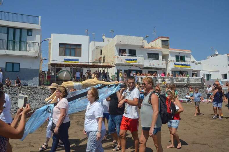 La playa de Ojos de Garza mostró un año más su fervor y cariño a las imágenes del Cristo y la Virgen del Carmen (Foto Francisco J. Santana)