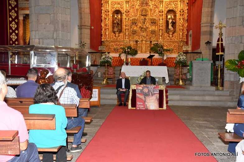 Desde una mesa situada a los pies del altar al que mañana martes descenderá la efigie del Santo Cristo para reposar en una urna de cristal, Arencibia pronunció un pregón en el que aunó la vertiente histórica con la espiritual.