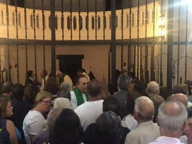 Muchos feligreses no pudieron acceder al templo y tuvieron que seguir la eucaristía desde la calle.