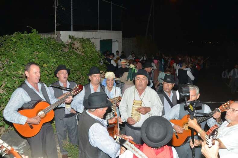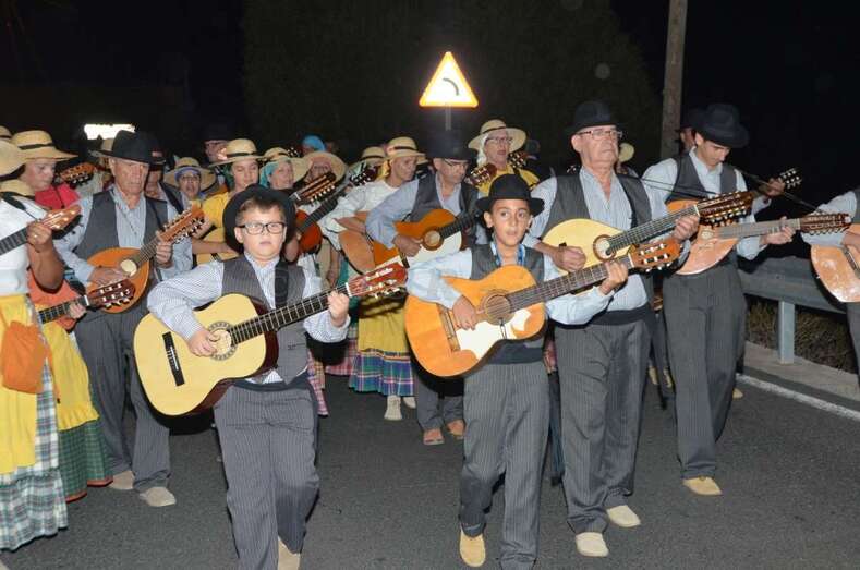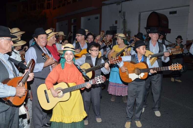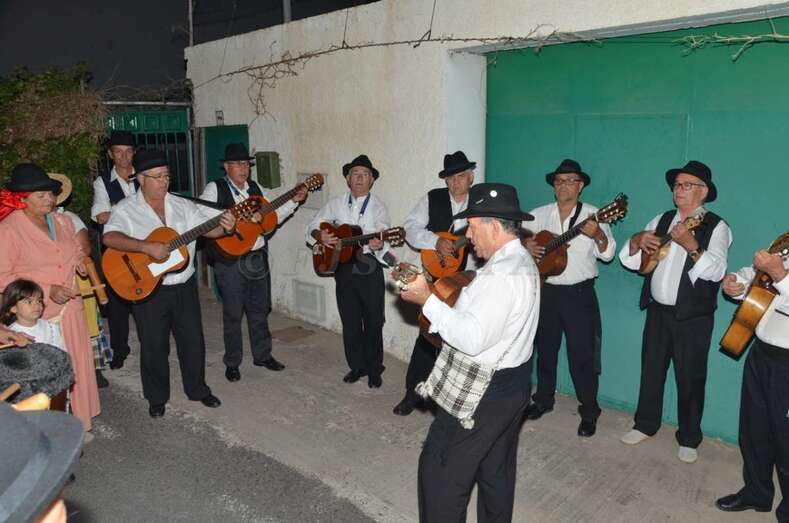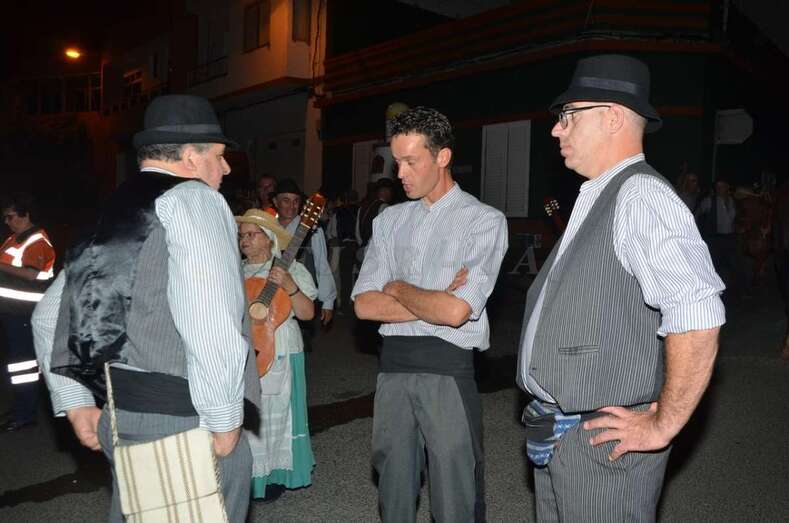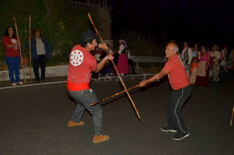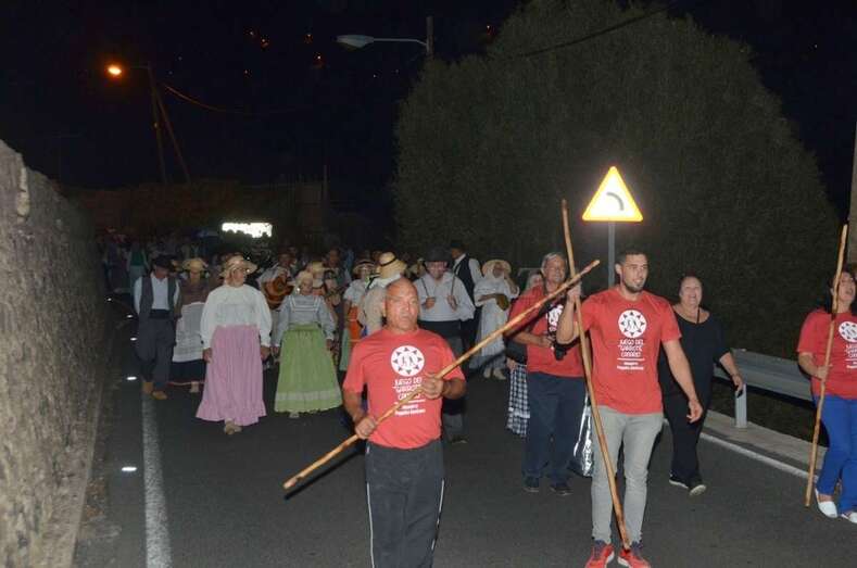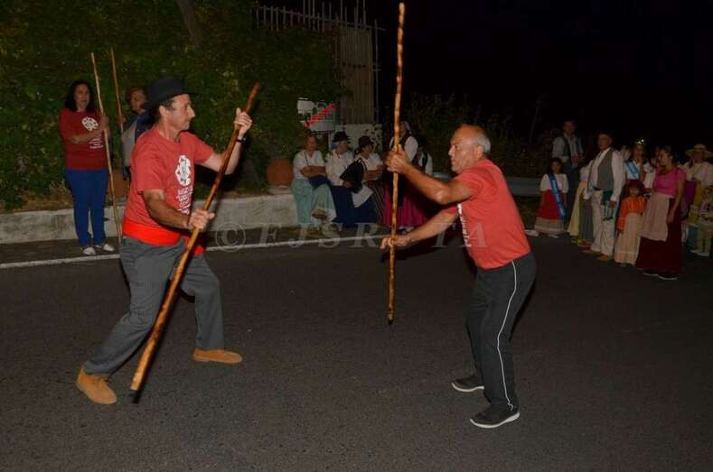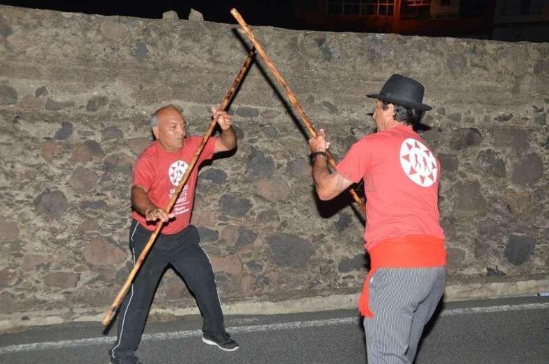 Durante el recorrido y en la plaza miembros de Escuela del Garrote Canario del Maestro Paquito Santana de Telde exhibieron la práctica de este juego autóctono.