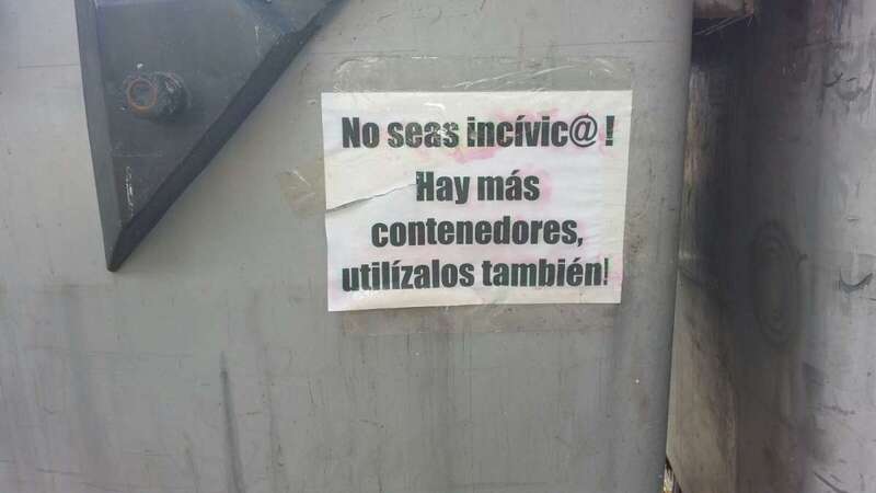 En Salinetas, sin ir más lejos, los ciudadanos han evidenciado su malestar con este comportamiento alejado de todo civismo colocando carteles en el exterior de los contenedores que llaman la atención sobre la necesidad de depositar las basuras en su interior y no sobre la acera o en las vías.