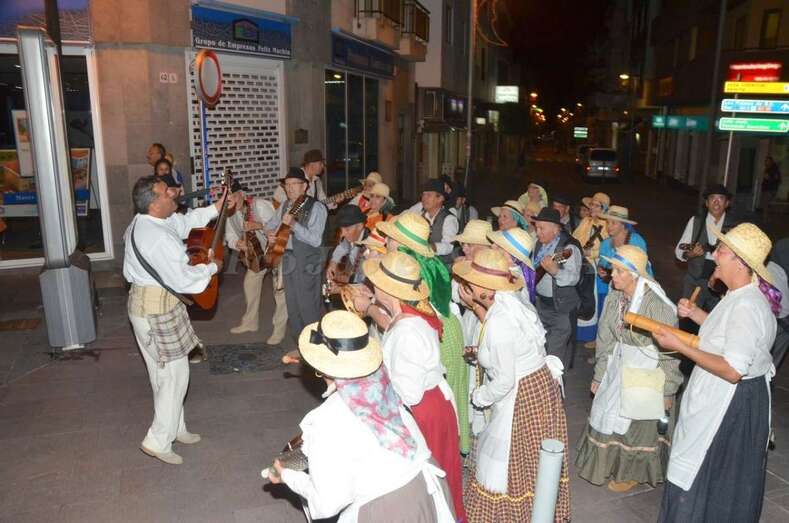 El deseo de mantener vivo el culto a los difuntos llevó a la Concejalía de Cultura a organizar un encuentro que arrancó a las 20.30 horas con un pasacalles protagonizado por la agrupación Gran Faycán, del Centro de la Tercera Edad de Telde, que finalizó en la plaza pública, donde tendría lugar un baile de cuerdas con las parrandas El Roque Azucarero, El Volumen y Tarot.