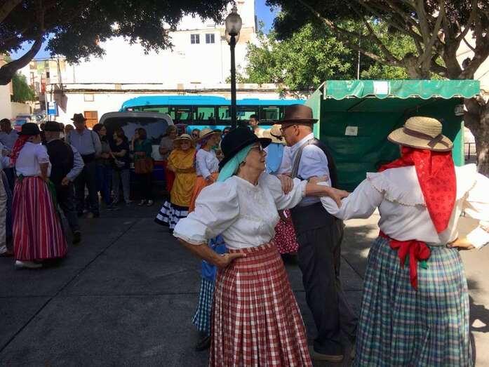 En el entorno del parque, Festejos ha colocado un escenario para actuaciones musicales que amenicen la feria y un castillo hinchable para que los niños se diviertan. Este mediodía, después del acto inaugural, actuó con su cuerpo de baile la Agrupación Folclórico El Gran Faycán, del Centro de Mayores de Telde.