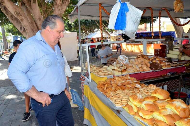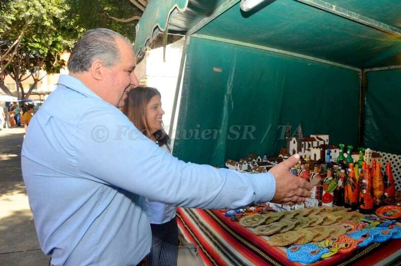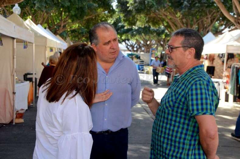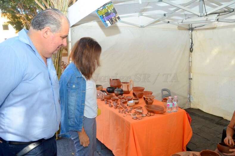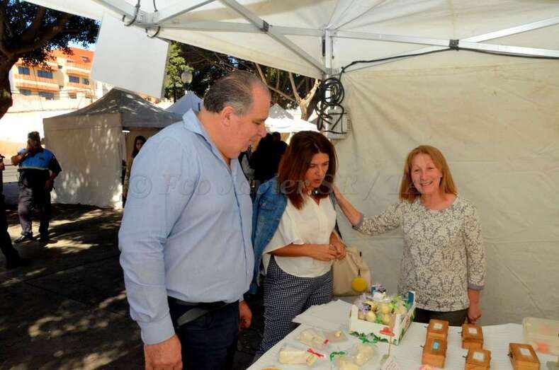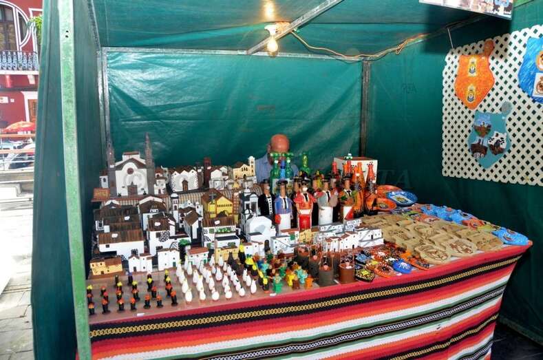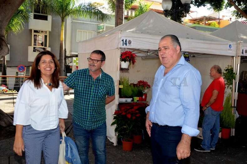 La muestra fue inaugurada y recorrida por la alcaldesa Carmen Hernández y el concejal del área de Festejos, Juan Martel, que visitaron, acompañados de la también edila Saro Sosa, cada uno de los puestos y compartieron un rato con los artesanos que ofrecen a la venta trabajos realizados en barro (alfafería), cestería, ropa, belenes, figuras navideñas, casas canarias, complementos de moda (collares y pulseras), marroquinería, etcétera.