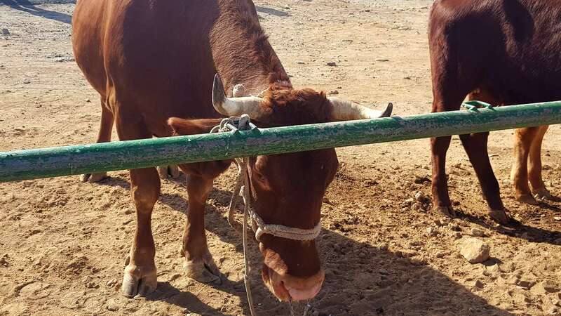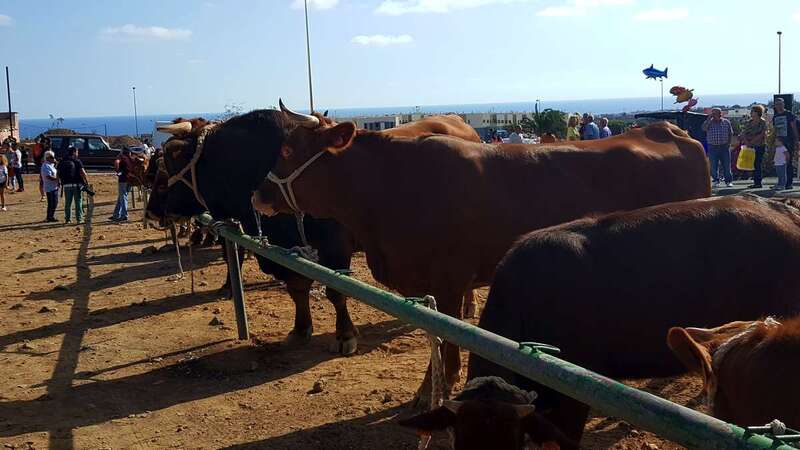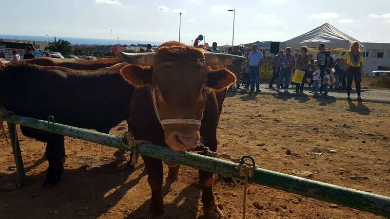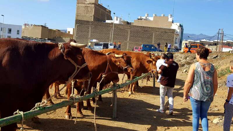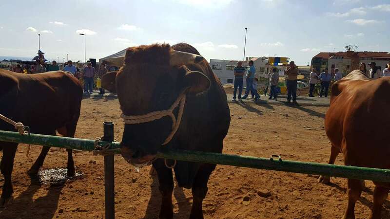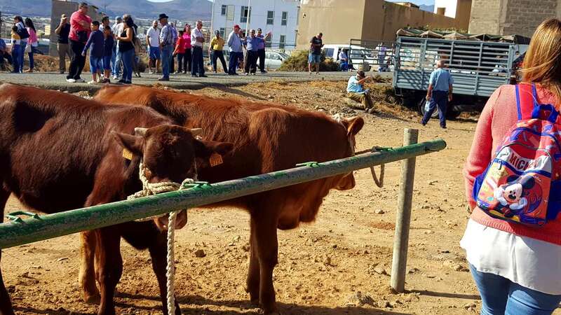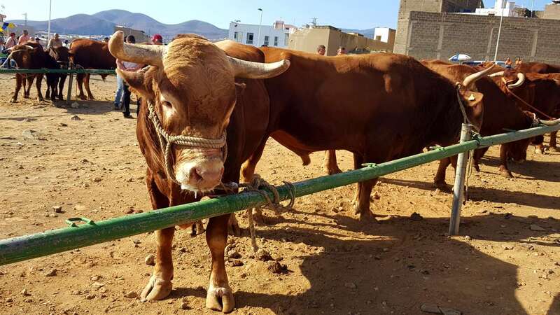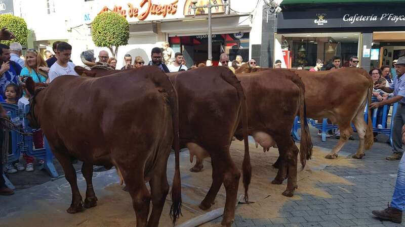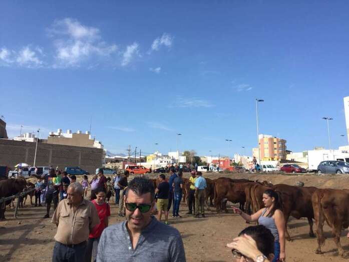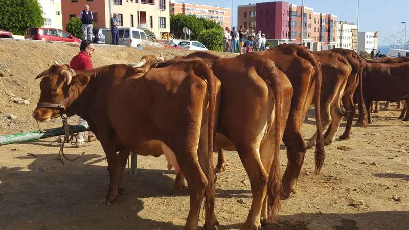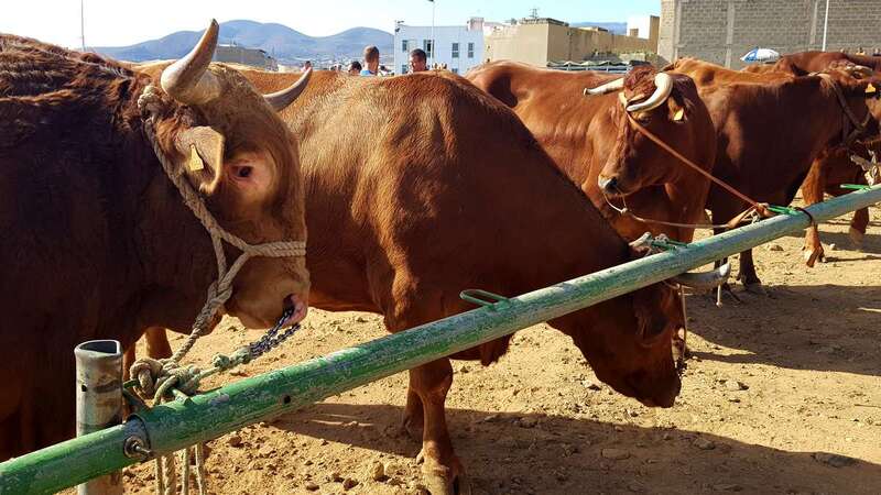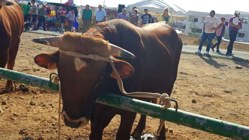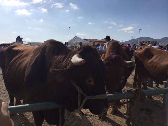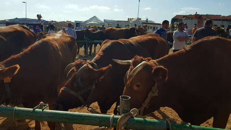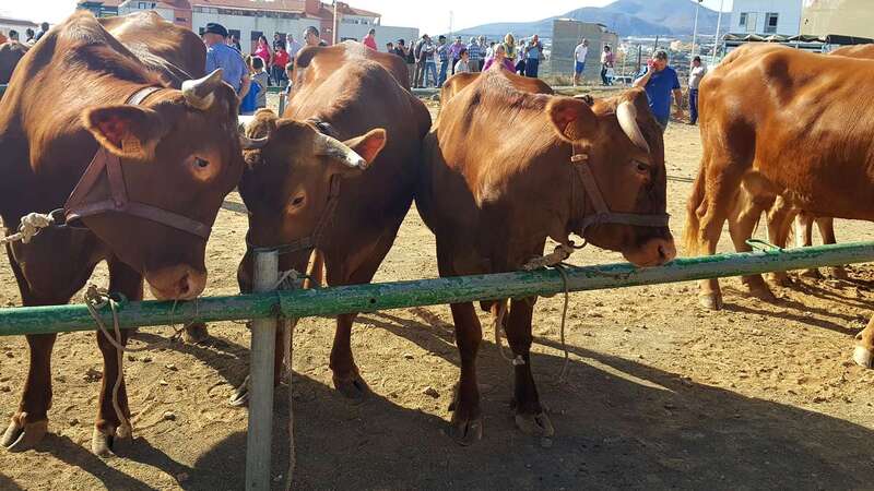 Y no muy lejos del entorno de la plaza, en las Ramblas de Pedro Lezcano, espera la muestra de ganado con alrededor de 100 cabezas, mayoritariamente ganado vacuno (vacas, toros y novillos) y algún burro y caballo.