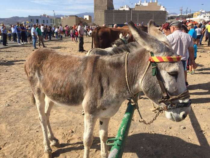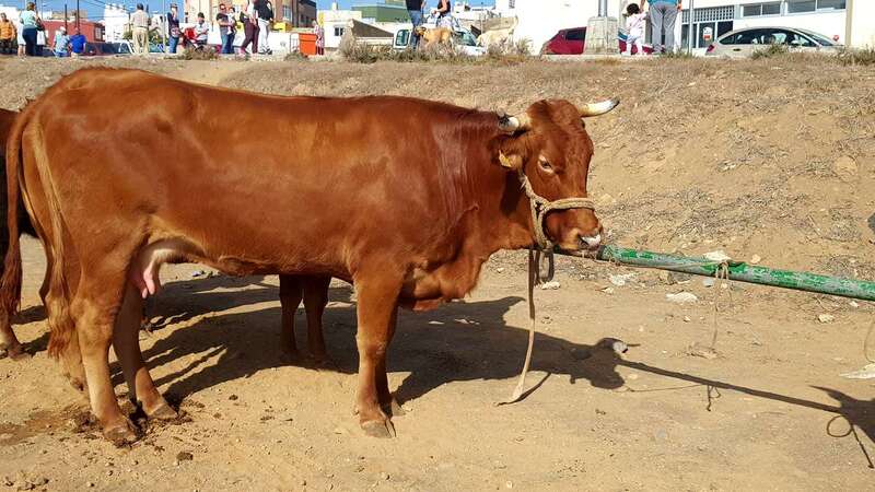 Animales que pertenecen a 13 ganaderías de Telde, Firgas, Teror y Gáldar que más tarde, a eso de las 13.00 horas, enfilarán la calle Juan Diego de la Fuente en dirección al templo de San Gregorio para saludar amistosamente al santo taumaturgo y a las autoridades.