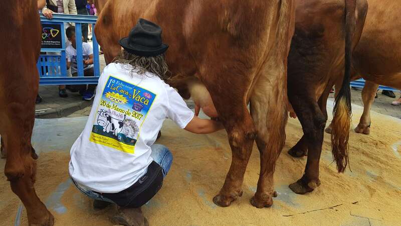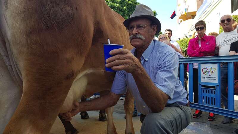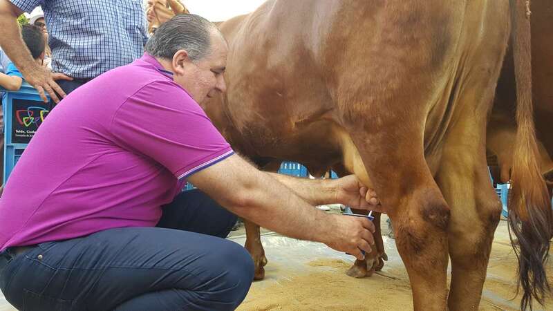 El concejal de Festejos del Ayuntamiento de Telde, Juan Martel, fue uno de los encargados, de extraer la leche. Pero las generosas ubres de Neri, Pajarita y Clavellina, y de Yessi y Rosana, no fueron suficientes para dar de beber a todo el público presente. “El próximo año, en vez de cinco tendremos que traer diez vacas”, apuntaba junto a Loli y Antonio Sosa, ganaderos de Los Llanetes de Valsequillo y de la Cruz de Jerez que aportaron las vacas, el edil Martel, que se mostraba entusiasmado por el buen desarrollo de las fiestas y por el interés que estas han despertado este año entre la población teldense.