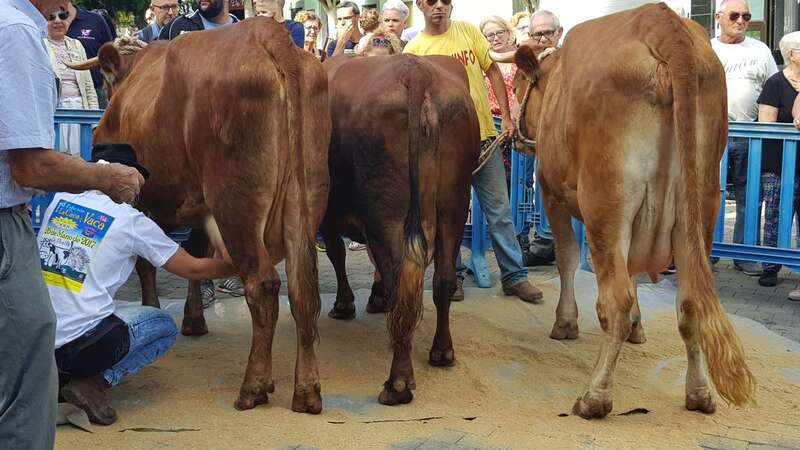 Uno de los actos, sin duda, más esperados en el día grande de las fiestas, sobre todo para los muchos niños presentes que contemplaban con curiosidad y admiración la ordeñada.