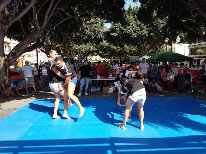 En definitiva, una jornada familiar y de ambiente de los más festivo, con mucho público en las calles de Los Llanos, a la que no le ha faltado el toque musical, con un concierto de la Banda Municipal en la plaza (12.00 horas); y tampoco la artesanía y el deporte, con la feria y la exhibición de lucha canaria, garrote tradicional y taekwondo en Franchy Roca.