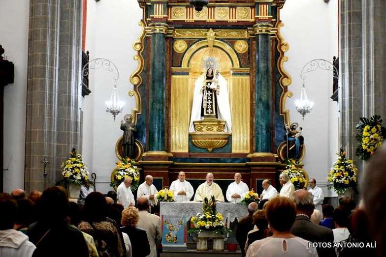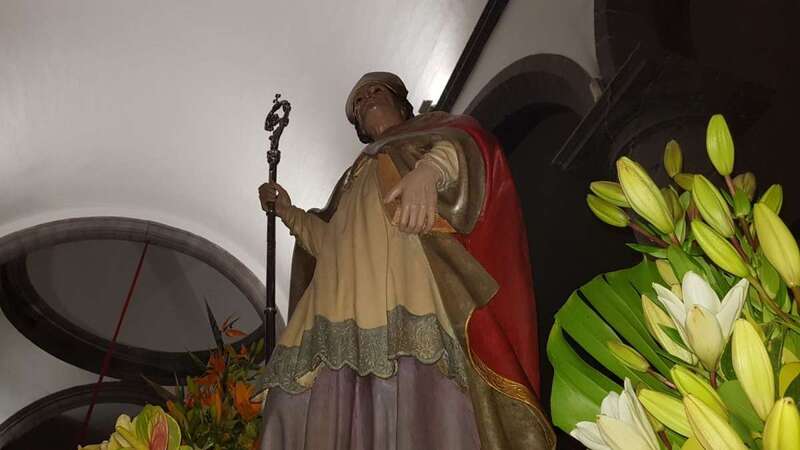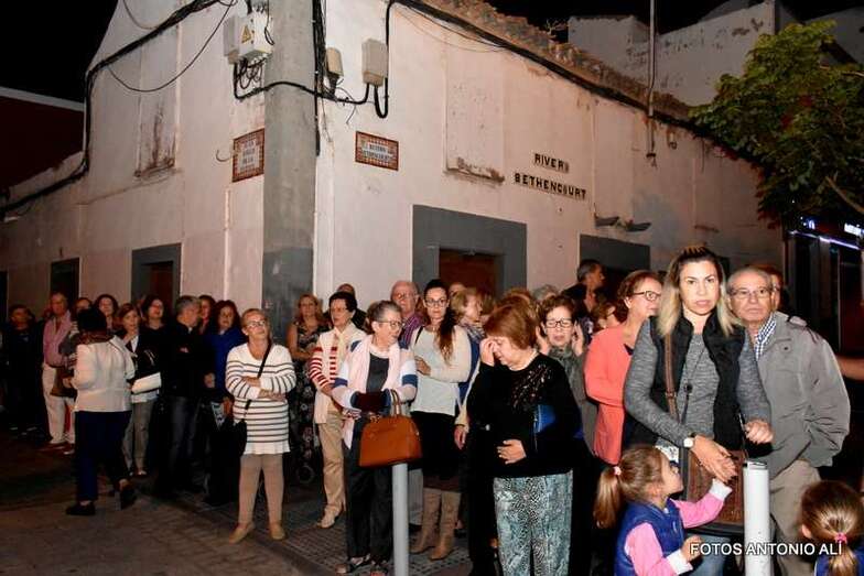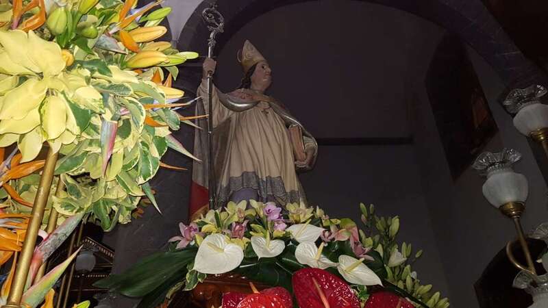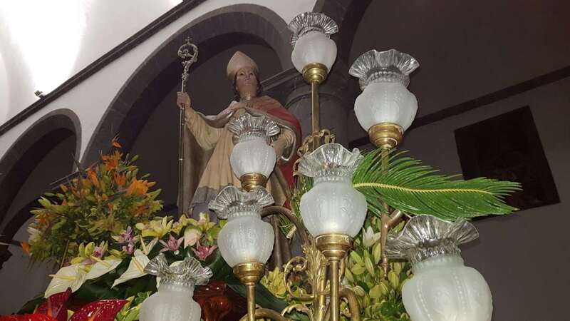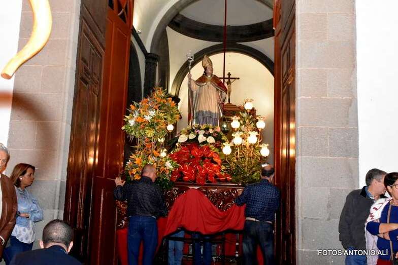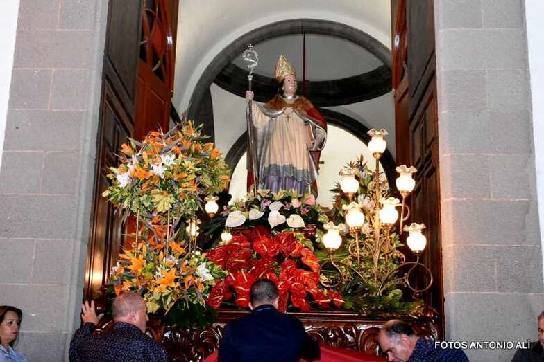 Tras la eucaristía que comenzó a las 19.00 horas y finalizaba más de una hora después, la bella talla del santo milagreso, una preciosa obra del imaginero grancanario Luján Pérez, asomaba a las 20.22 horas por la puerta del templo neoclásico para iniciar la procesión por las calles de Los Llanos con el acompañamiento de autoridades, feligreses y de la Banda Municipal de Música.
