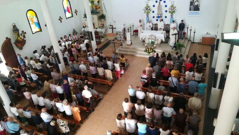 Los actos de esta jornada dominical estuvieron divididos en dos partes. Por un lado, una misa presidida por el obispo de la Diócesis de Canarias, Francisco Cases, en el tempo bajo la advocación de la Virgen de Fátima, eucaristía concelebrada a partir de las 11.00 horas por varios párrocos de Telde y a la que asistió un nutrido grupo de feligreses.