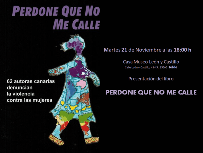 Telde.- Dentro de la programación municipal por el Día Internacional de la No Violencia hacia las Mujeres, la Casa-Museo León y Castillo acogerá este martes (18.00 horas) la presentación del libro Perdona que no me calle. Una recopilación de microrelatos en la que 62 autoras canarias, varias de ellas de Telde, que a través de las letras denuncian la violencia machista.