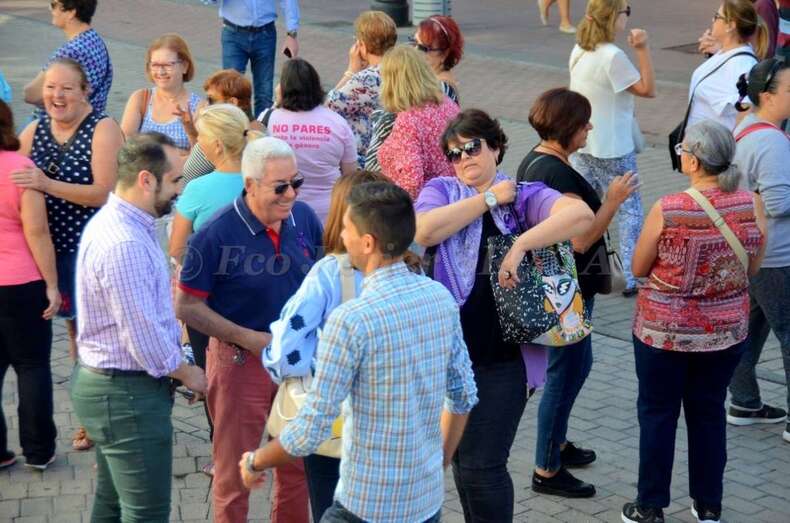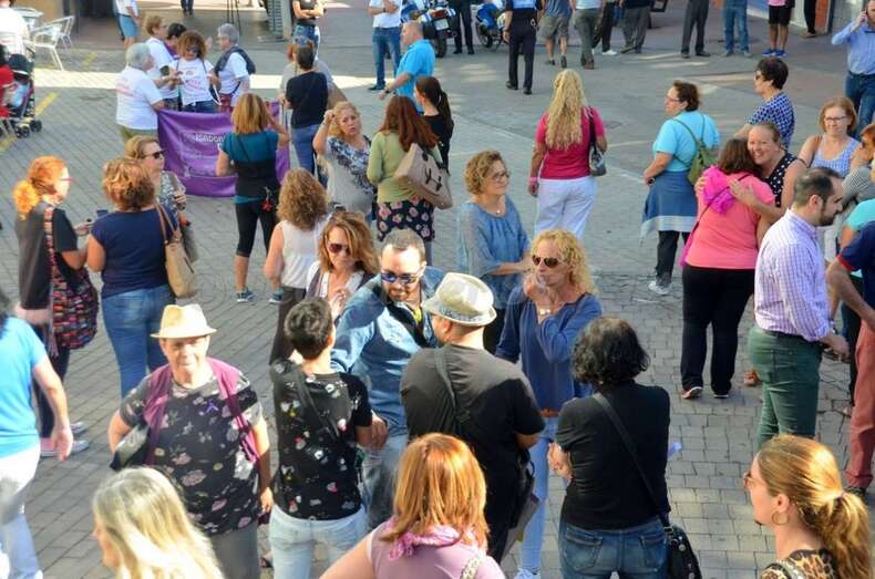 Bajo un silencio sepulcral, luciendo lazos violetas y portando algunos carteles alusivos a la lucha contra esta lacra social, el grupo partió desde las inmediaciones de la plaza de Los Llanos y bajó por el tramo peatonal de la Avenida de la Constitución hasta llegar a la rotonda de Daora.