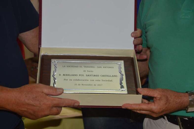 El que fuera alcalde de Telde, Francisco Santiago, que firma casi 40 años perteneciendo a El Tabaibal fue una de las personas a las que se les entregó una placa de reconocimiento. También recibió una distinción el periódico digital TELDEACTUALIDAD por su colaboración desinteresada en la divulgación de los eventos que se desarrollan en esta sociedad.