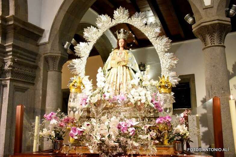 Un pregón plagado de recuerdos, anécdotas, viviendas…, en definitiva, de parte de la historia más reciente de Jinámar el que Pedro Galván brindó esta noche al público que se congregó en el templo y santuario de La Concepción.