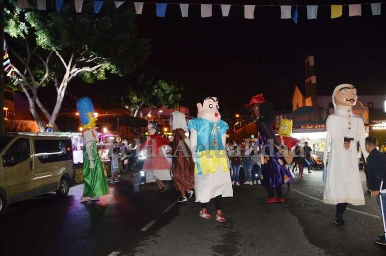 La carretera general se convirtió entonces en una gran fiesta con el reparto de unos 800 kilogramos de caña dulce, recién traída desde Mogán, por miembros del patronato desde una antigua carreta diseñada con traperas y otros elementos propios de la cultura canaria.