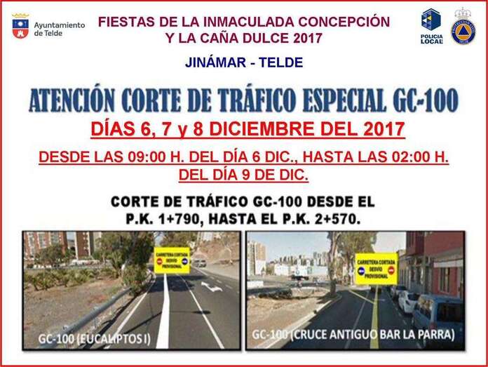 Telde.- La carretera general de Jinámar, la GC-100, permanecerá cortada al tráfico desde magna miércoles y hasta el próximo sábado con motivo de las fiestas de la Caña Dulce y La Concepción.