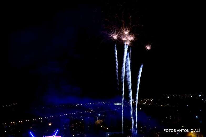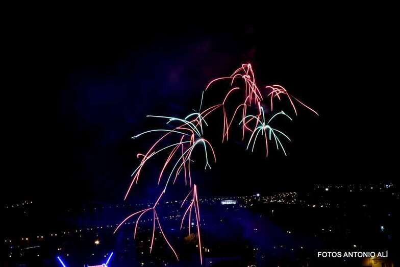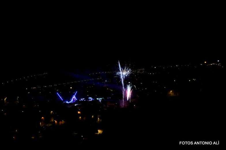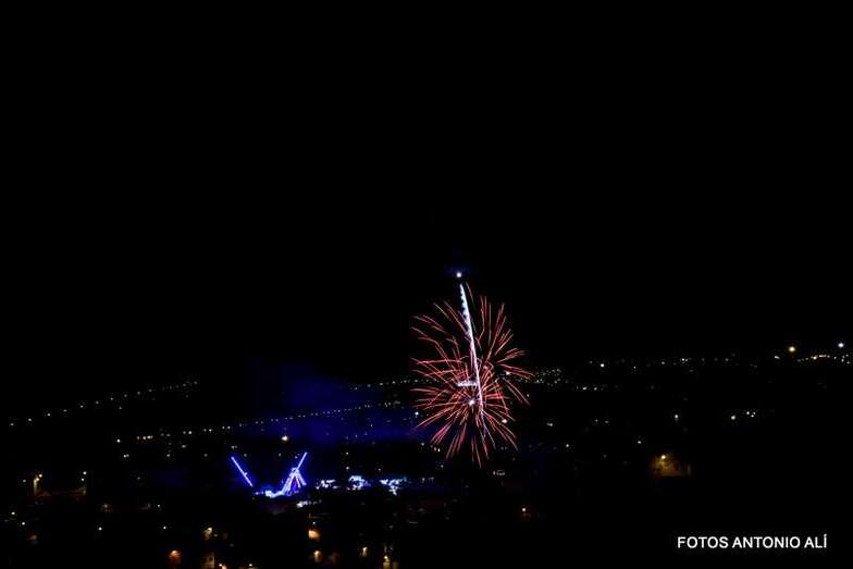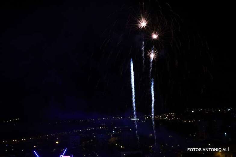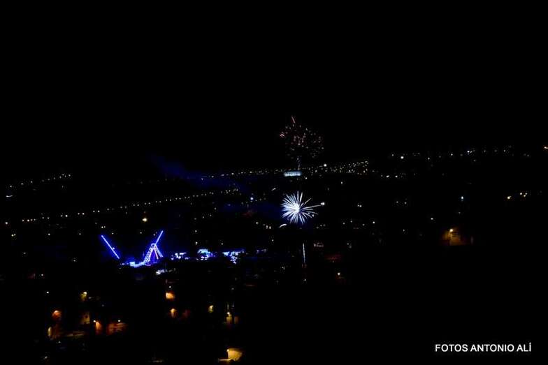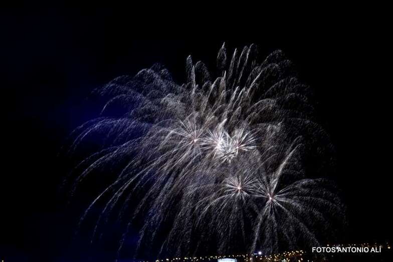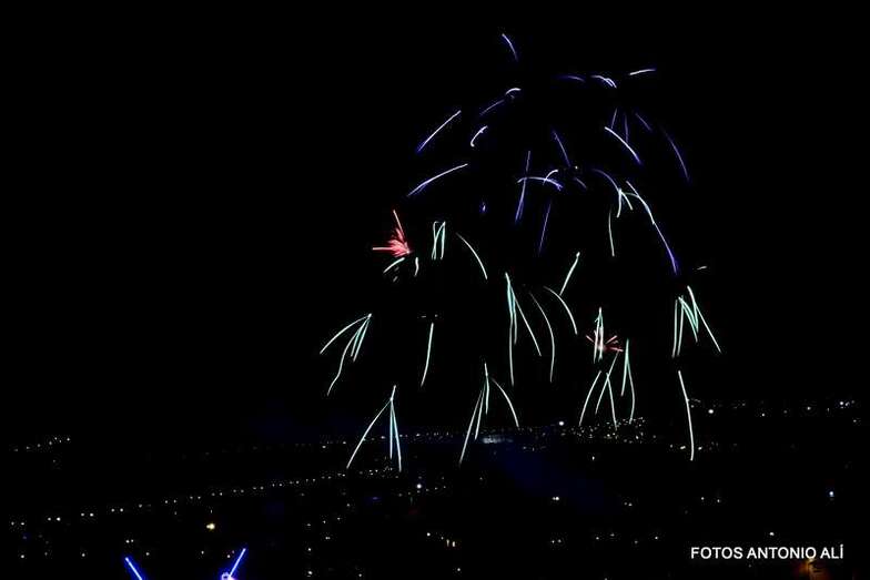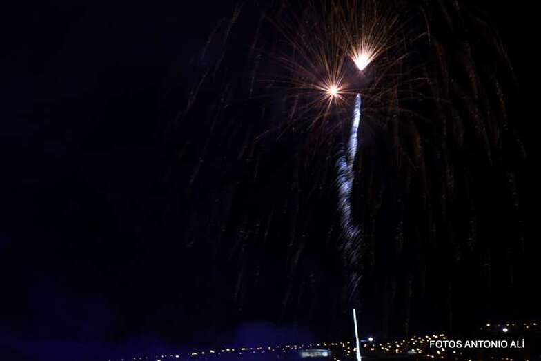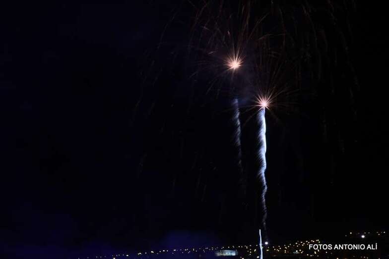 Luego a medianoche tomó el protagonismo pasó a la exhibición de fuegos artificiales a cargo de la empresa Pirotectnia Piromart, de Telde, que por espacio de unos 10-15 minutos anunció la entrada en el día grande de las fiestas patronales de Jinámar.
