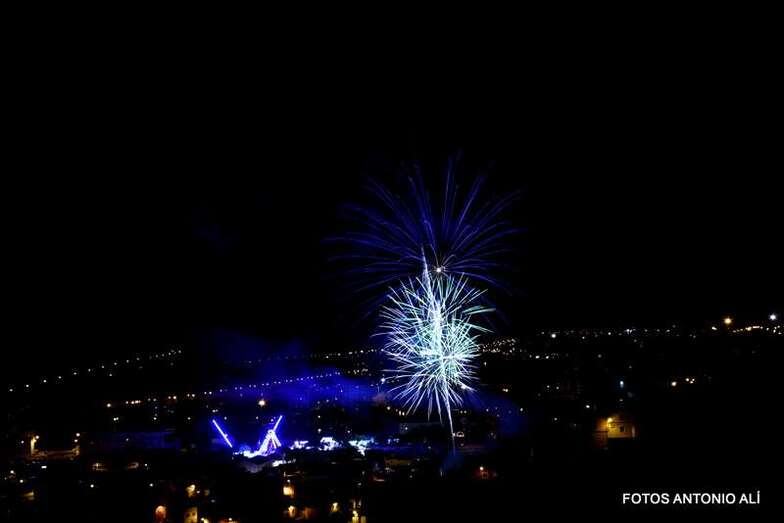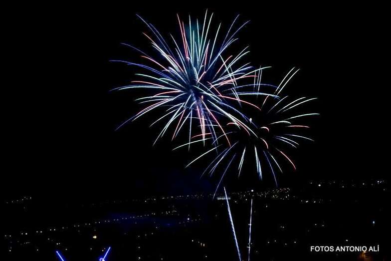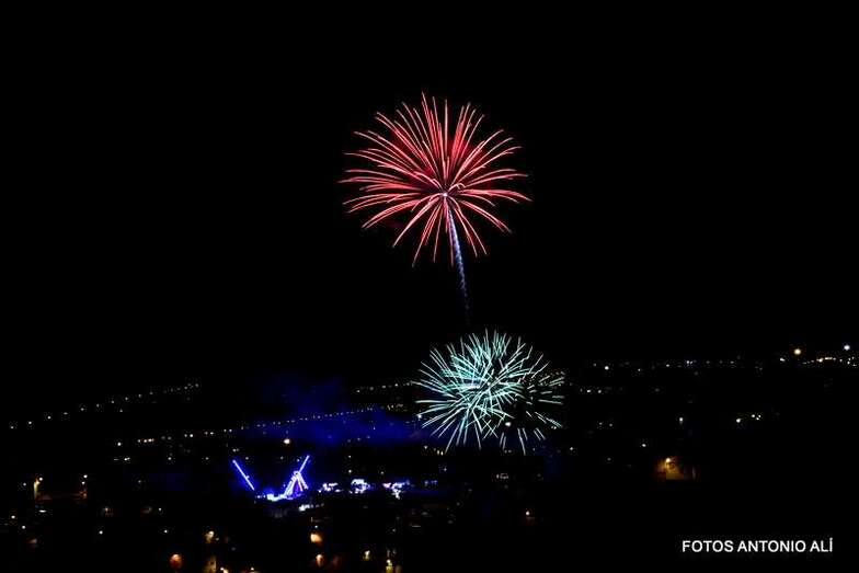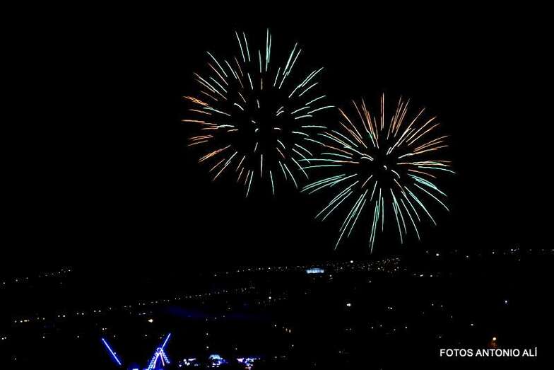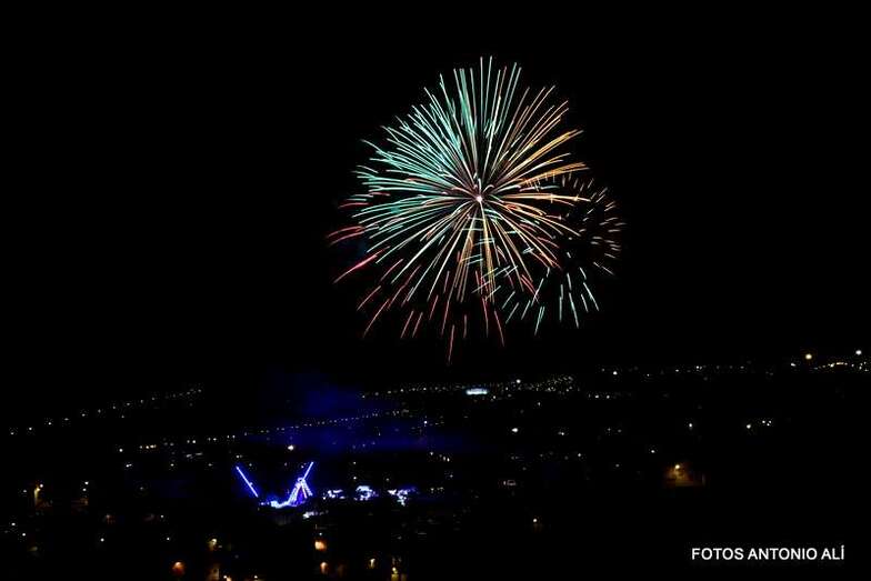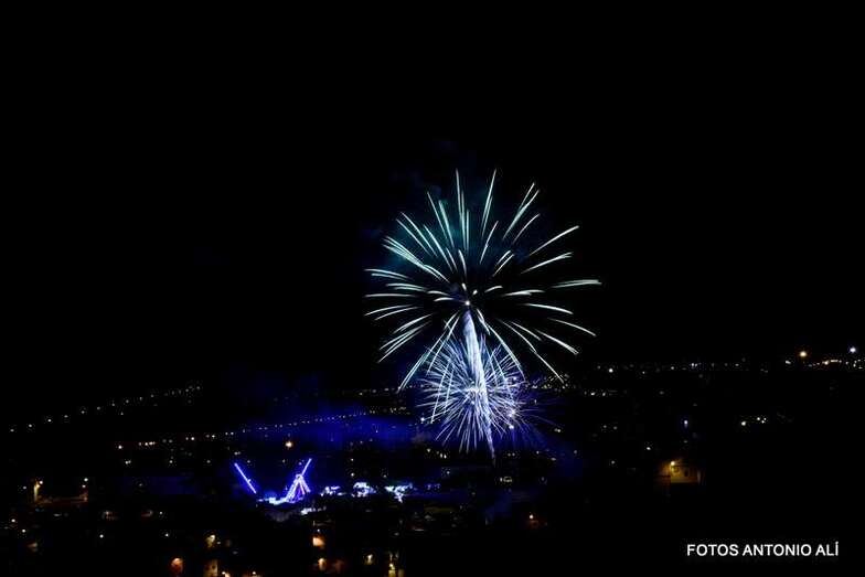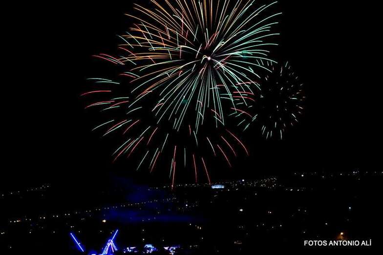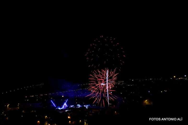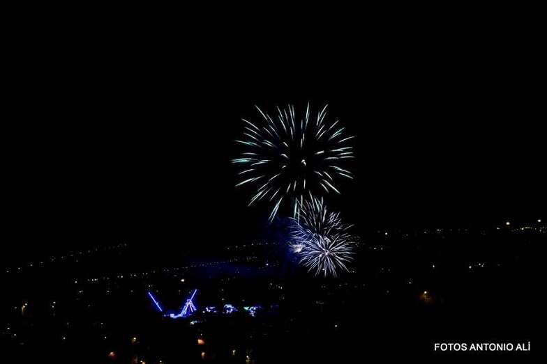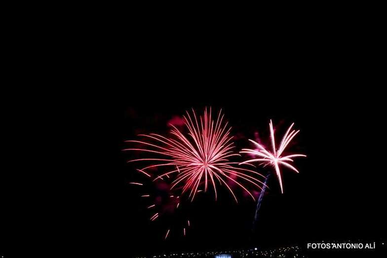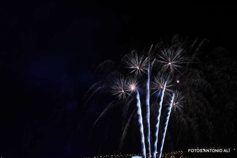 Luego a medianoche tomó el protagonismo pasó a la exhibición de fuegos artificiales a cargo de la empresa Pirotectnia Piromart, de Telde, que por espacio de unos 10-15 minutos anunció la entrada en el día grande de las fiestas patronales de Jinámar.