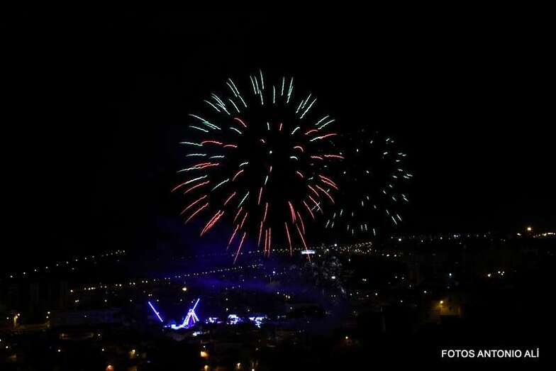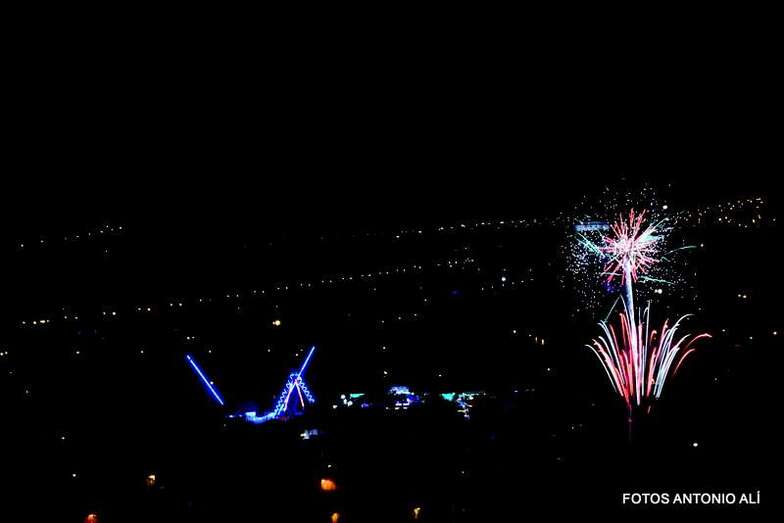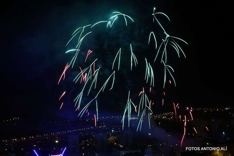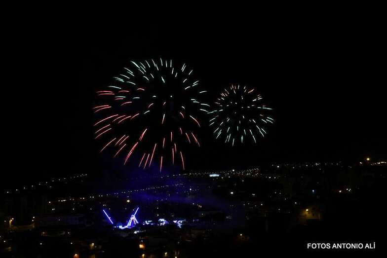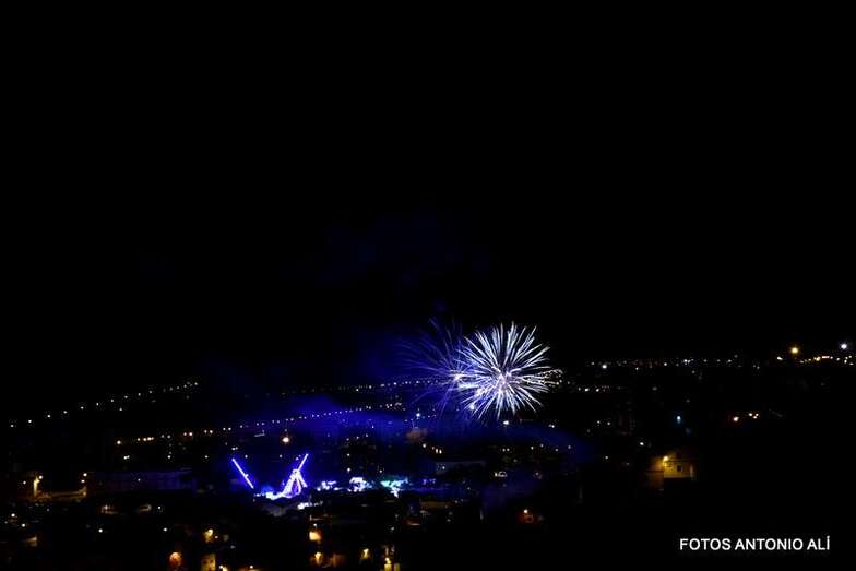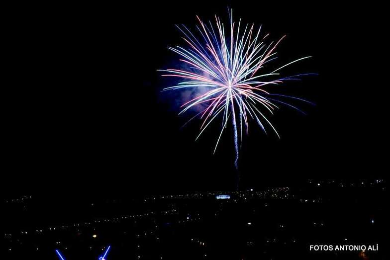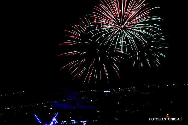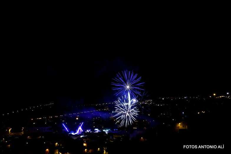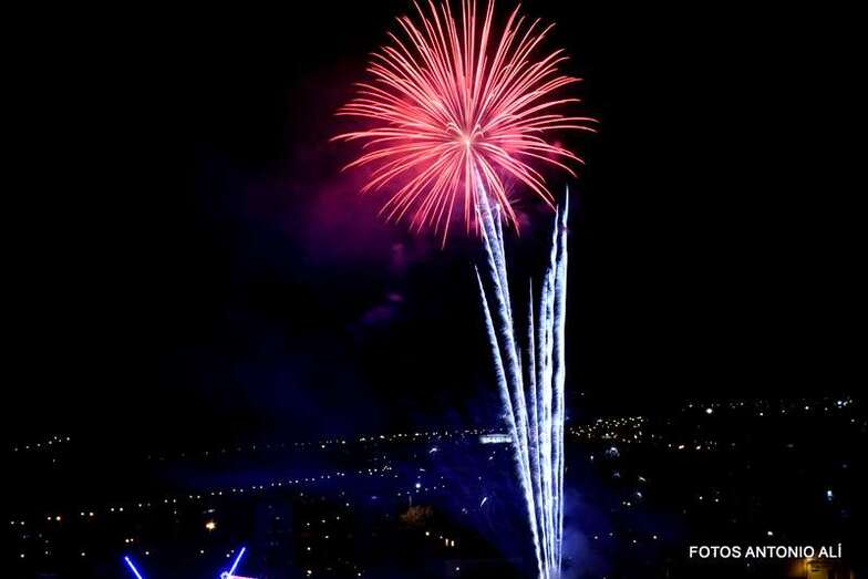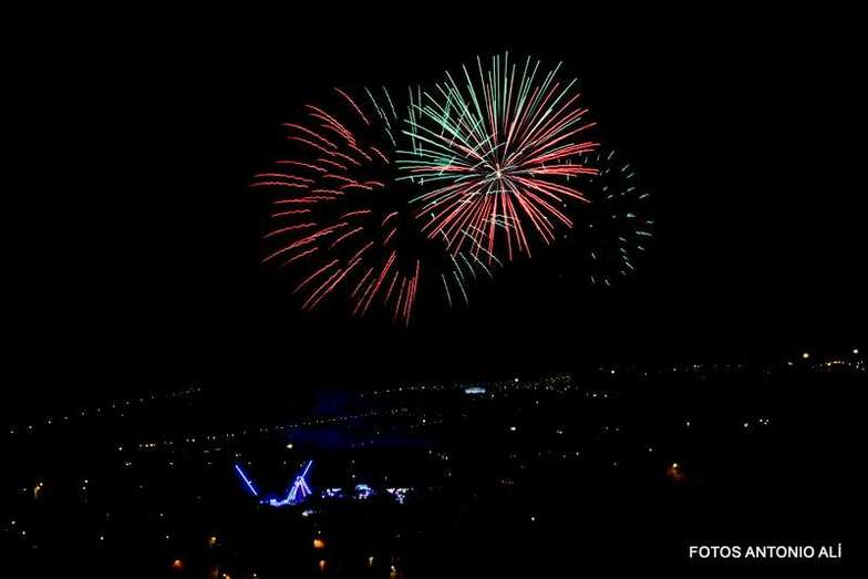 Luego a medianoche tomó el protagonismo pasó a la exhibición de fuegos artificiales a cargo de la empresa Pirotectnia Piromart, de Telde, que por espacio de unos 10-15 minutos anunció la entrada en el día grande de las fiestas patronales de Jinámar.