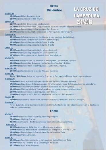 A las 16.30 de este sábado, 23 de diciembre, la Cruz llegará a la plaza de Los Llanos, donde se celebrará un acto de solidaridad. Luego, a las 19.00 horas, habrá una misa en la Parroquia de San Gregorio y media hora después un vía crucis con vigilia. De Telde partirá hacia Santa Brígida.