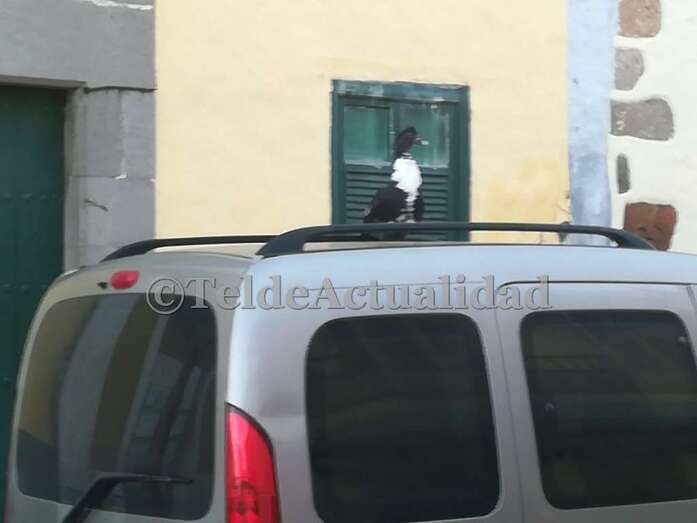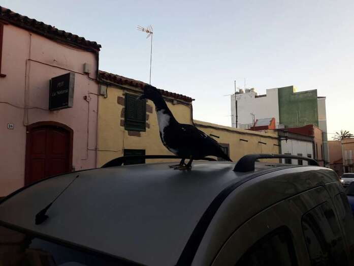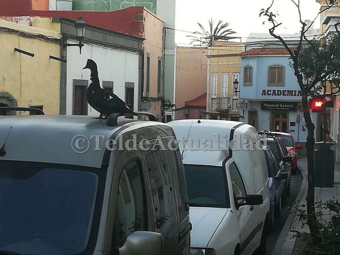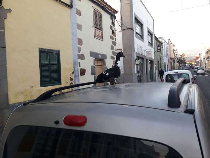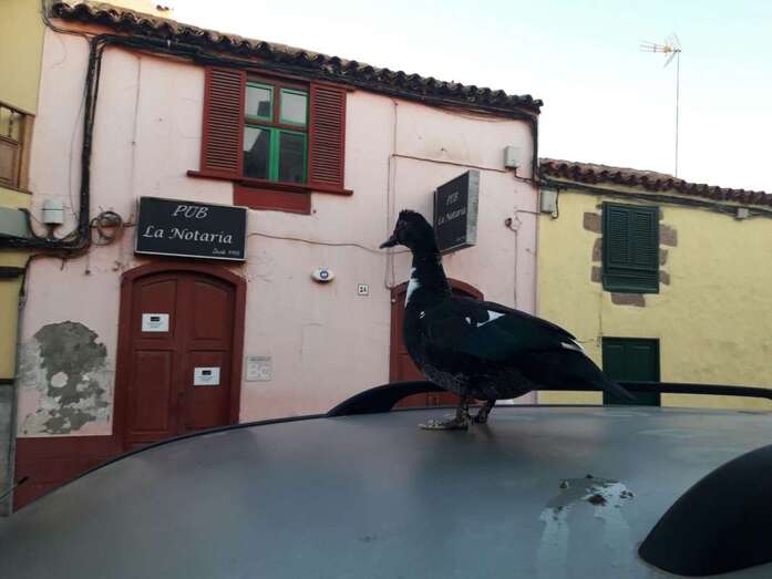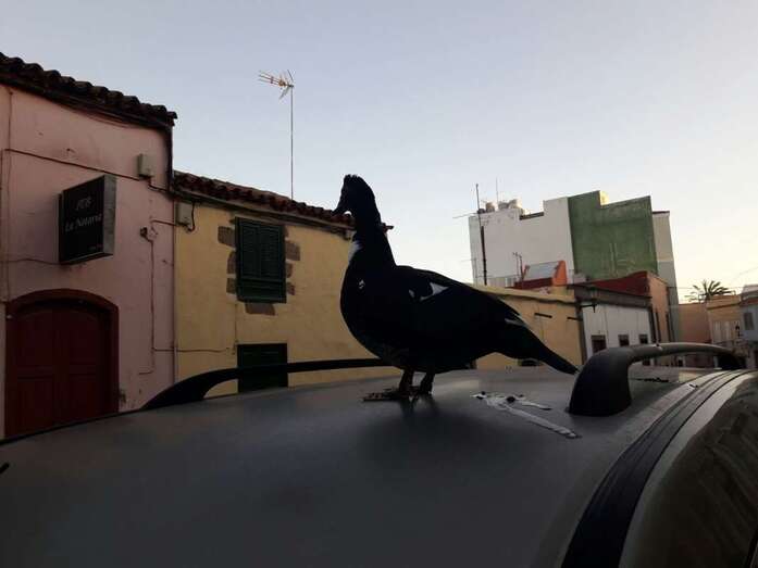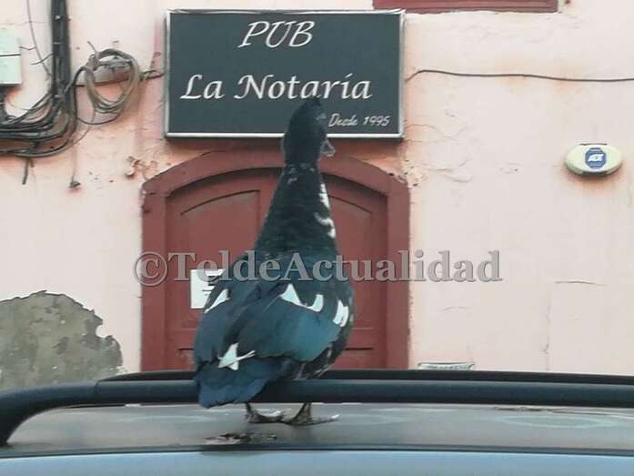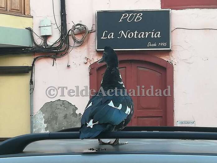 Telde.- San Juan no deja de sorprender a los viandantes de la zona. Si días atrás fue un hombre que caminaba desnudo, esta mañana fue un pato que estacionó en lo alto de un vehículo que estaba aparcado en la calle de León y Castillo, a la altura del pub La Notaría.