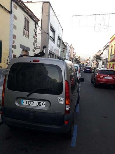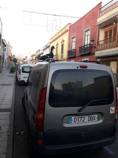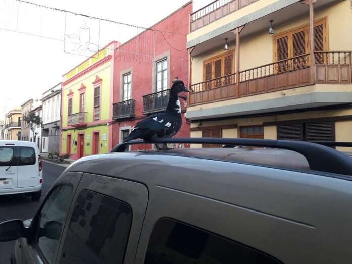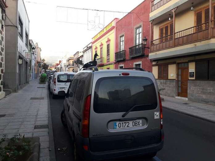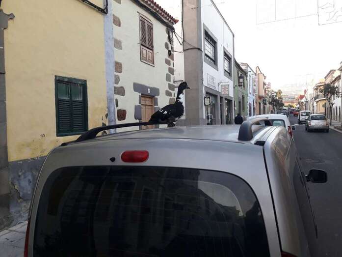 El ave se posó en lo alto de un vehículo aparcado en la calle de León y Castillo