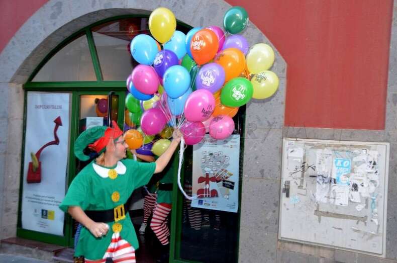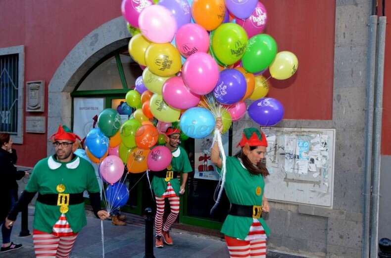 Entre una multitud de pequeños expectantes, Papá Noel se abrió paso caminando en dirección hasta el entorno de la plaza de Los Llanos, punto que se transformó por unas horas en un enclave de ensueño, animado por la música ambiental y los globos multicolores que portaban renos y elfos.
