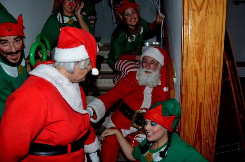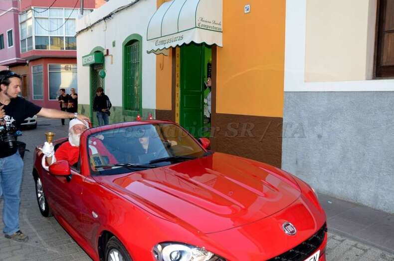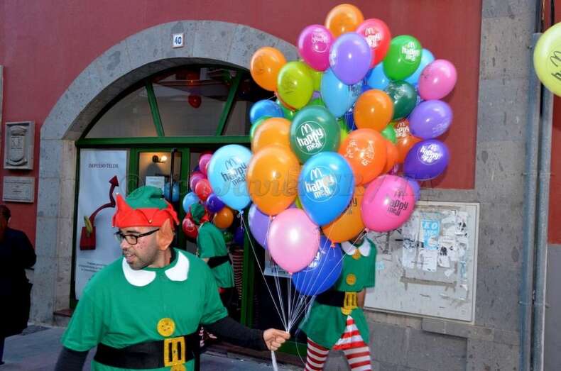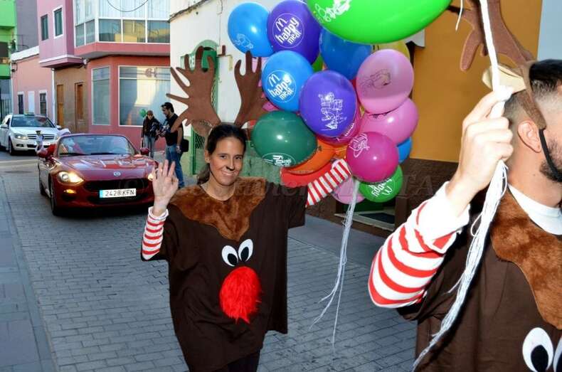 Papá Noel llegó al núcleo comercial de Los Llanos a bordo de un descapotable de color rojo que, a modo de trineo motorizado, hizo su entrada en la ciudad por la calle de Navarra. El gordinflón y barbudo bonachón, escoltado por una corte de renos y elfos, iba tocando una campanilla anunciando su llegada a los cientos de niños que se agolpaban con sus padres y madres en el entorno de la peatonal Avenida de la Constitución. Allí también estaba la concejala de Desarrollo Local y vicealcaldesa, Celeste López.