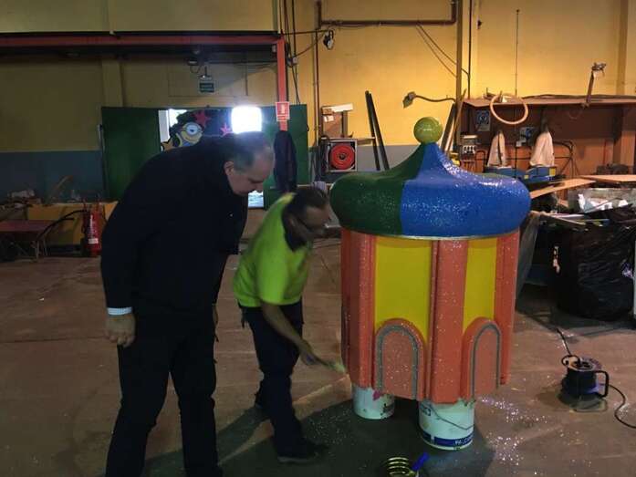 Durante su visita a las instalaciones de Festejos, Martel no ha querido pasar por alto el reconocer el trabajo que estos días desarrollan con gran empeño todos los empleados municipales que participan en el proceso de elaboración y entallamiento de de las carrozas. Así como a todos los colaboradores y colectivos que de una forma u otra contribuyen a que esa noche sea la más mágica del calendario.
