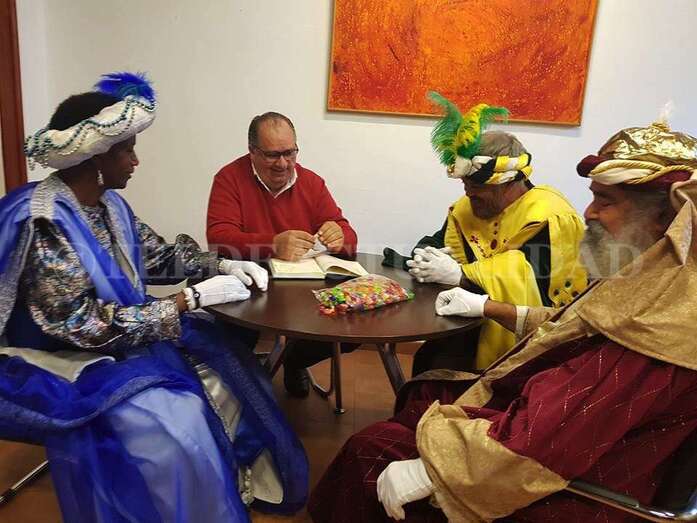 Con gran expectación, la alcaldesa Carmen Hernández les hizo entrega de la Llave de la Ciudad para que esta noche puedan abrir las puertas de los miles de hogares de la ciudad por los que pasarán y cumplir así con su encargo mágico. También recibieron de manos del edil Juan Martel un mapa con el que orientarse.