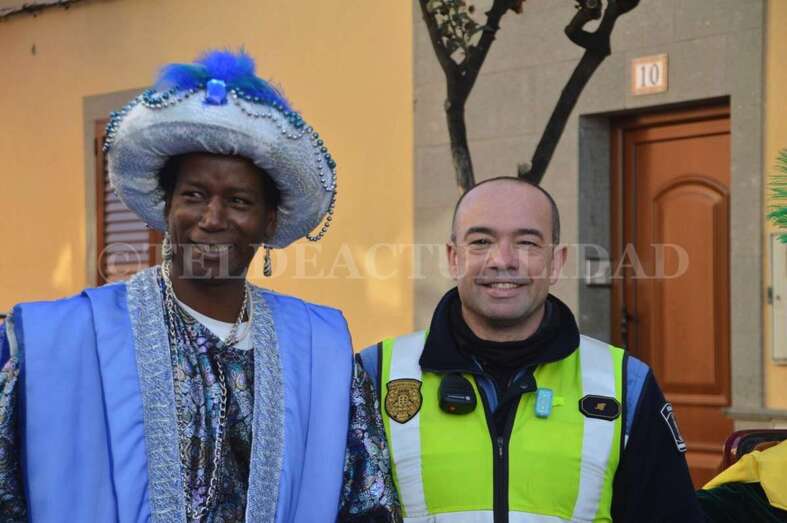 Baltasar, Gaspar y Melchor, junto a dos de los policías locales que hoy les brindarán escolta por las calles de Telde (Foto TA) Baltasar, Gaspar y Melchor, junto a dos de los policías locales que hoy les brindarán escolta por las calles de Telde (Foto TA)