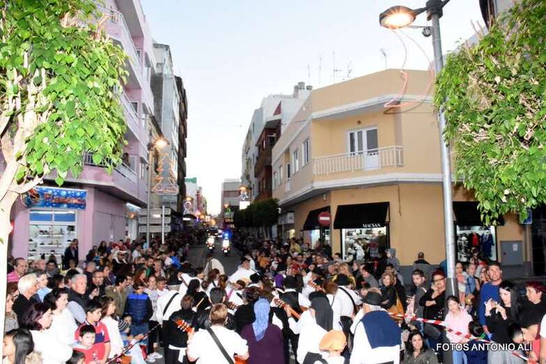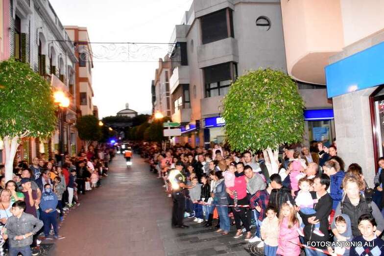 Telde.- Una multitudinaria comitiva conformada por ocho carrozas y unos 400 figurantes recorre desde hace unos minutos el casco urbano de la ciudad de Telde en la Gran Cabalgata de Reyes organizada por la Concejalía de Festejos.