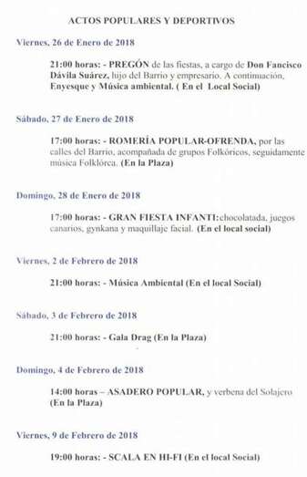 Después de varios años de capa caída, en los que el programa de fiestas quedó prácticamente reducido a los actos religiosos, los fastos vuelven a recobrar parte del esplendor del que gozaron antaño. Y lo hacen de la mano de una renovada asociación de vecinos, conformada exclusivamente por mujeres,  y de la Parroquia de Nuestra Señora de La Candelaria, colectivos que han contado con la colaboración del Ayuntamiento de Telde.