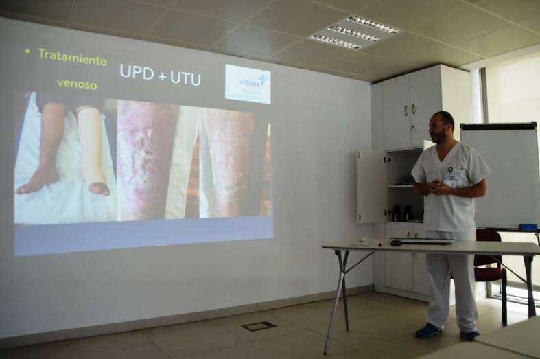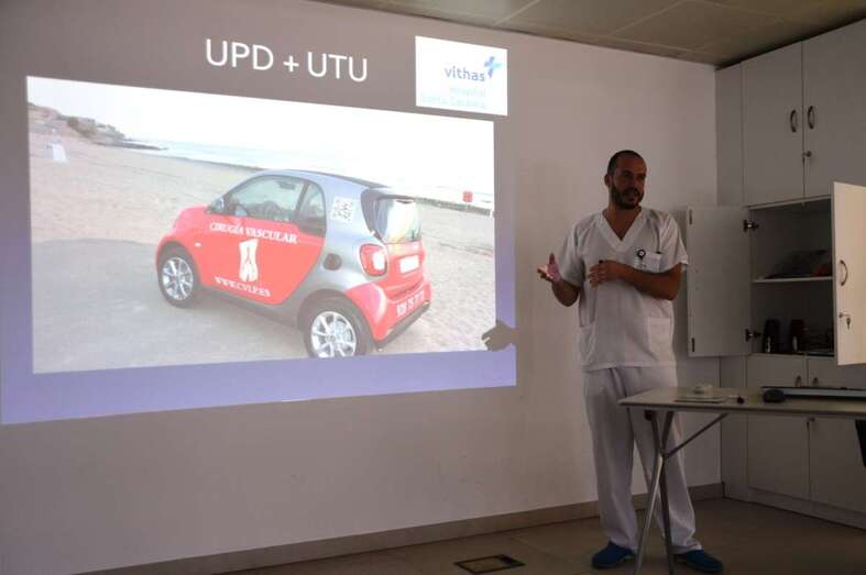 En la presentación de la unidad estuvieron profesionales de Atención Primaria de la sanidad pública y la jefa de Enfermería del Hospital Vhitas Santa Catalina, María José Garfias Muñiz, así como personal sanitario de este centro. Garfias reconoció el esfuerzo de Agredo para que la implantación de servicio especializado fuera una realidad y le felicitó por su empeño para que la idea cuajara.