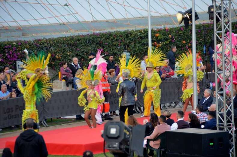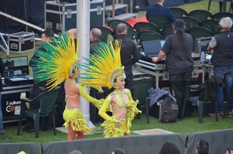El cantante Tutto Durán puso el cierre musical al espectáculo, en el que también desfilaron la Reina infantil de 2017, Paula de Castro, y la Gran Dama de la Eterna Primavera, Mary Hernández. En el antiguo estadio insular bailó además la comparsa Aragüimé, y aparecieron los personajes del Carnaval y representantes de diversas asociaciones ligadas a la fiesta más importante de la capital grancanaria, como la Federación de Grupos del Carnaval (FIGRUC), la Federación de comparsas, la Asociación de carroceros, la Asociación Drag y la Asociación de diseñadores (ADIC).