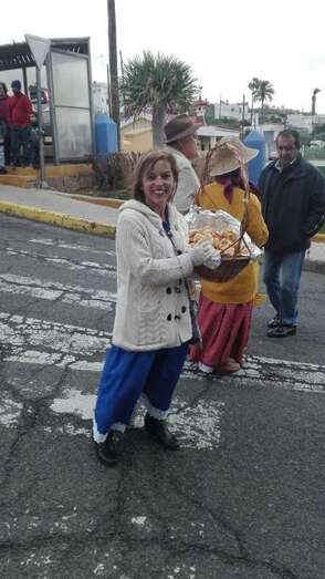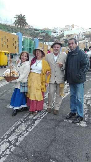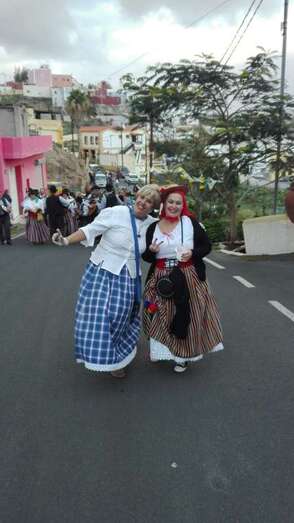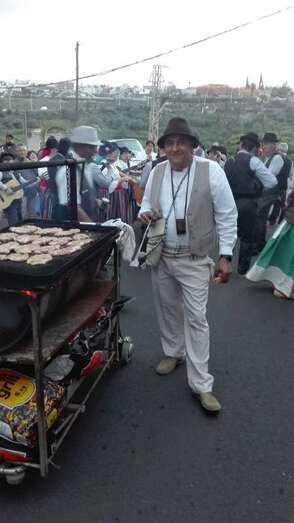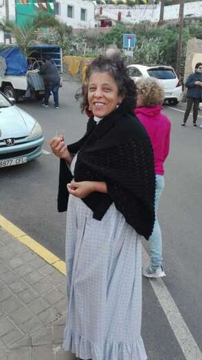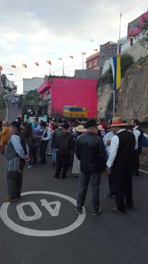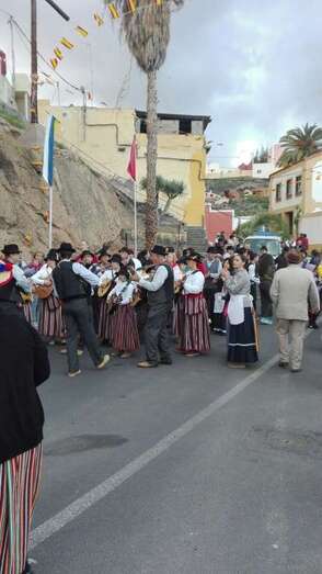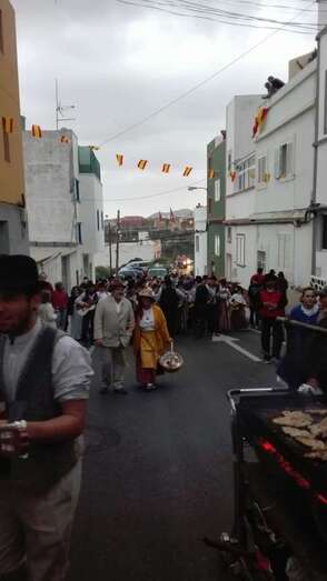 El tiempo desapacible no echó para atrás a los vecinos de este núcleo teldense de pasado prehispánico y se lanzaron a la calle para desde la vía acceso al barrio iniciar el recorrido que le llevaría hasta el templo, donde el trono de la patrona les esperaba para recoger las ofrendas a la vista del párroco Eugenio Peñate, uno de los impulsores de la recuperación de estos festejos populares junto con la nueva directiva del colectivo vecinal, conformado exclusivamente por mujeres.