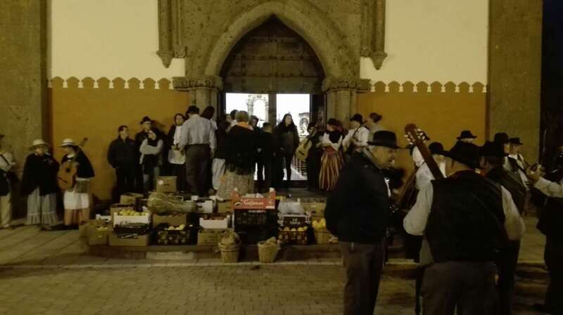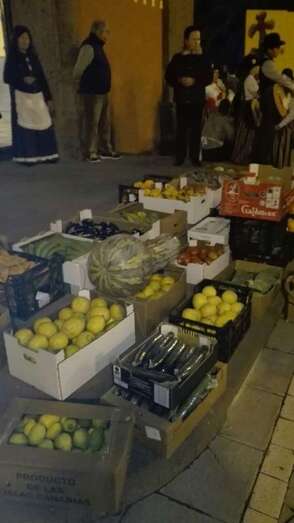 Tras la ofrenda de frutas y verduras, la plaza de Tara se animó con la actuación de grupos folclóricos y la degustación de platos típicos canarios.