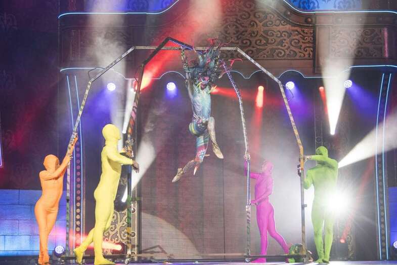 Fátima Plata y Paco Luis Quintana ejercieron de conductores en escena de un espectáculo impactante y muy aplaudido por el público que se desplazó hasta Santa Catalina.