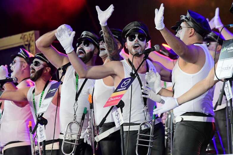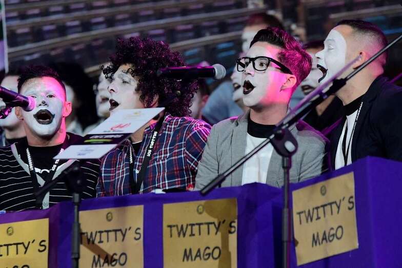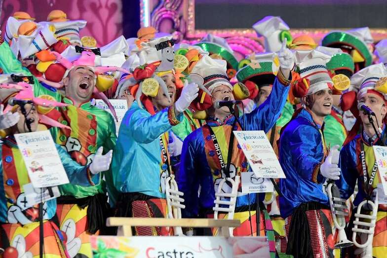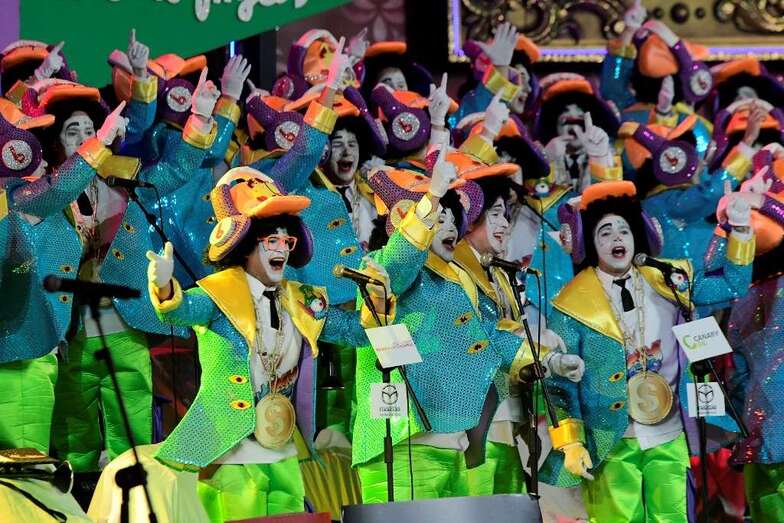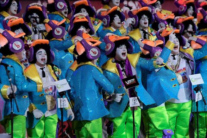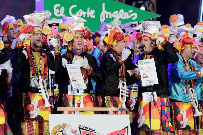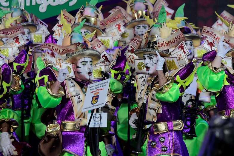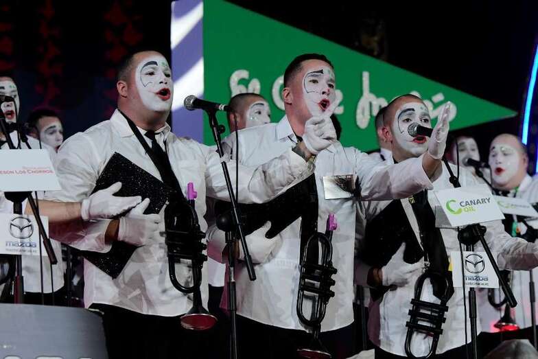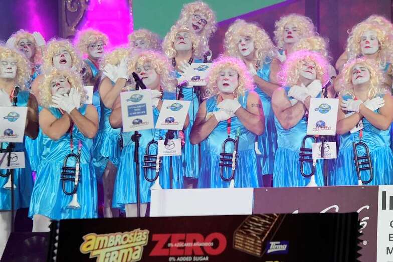 Los Nietos de Sary Mánchez, Los Twitty’s, Los Chacho Tú, Las Crazy Trotas -la única murga femenina finalista-, Los Chismosos, Los Trapasones, Los Serenquenquenes y Los Chancletas fueron introducidos por Daniel Calero que tarareó las introducciones de los grupos y puso rostro a un certamen que volvió a ser una de las tendencias principales a nivel estatal en Twitter.