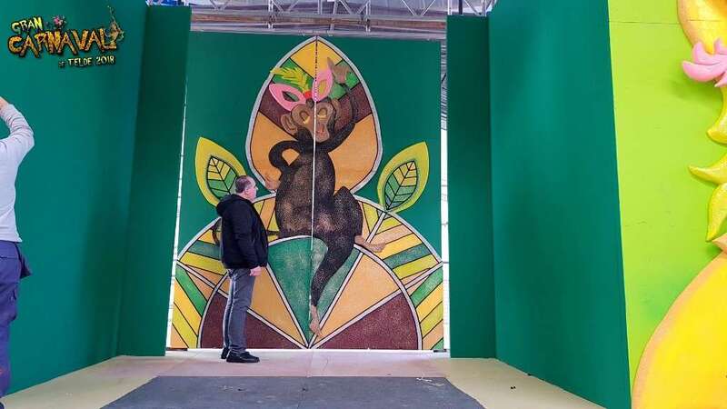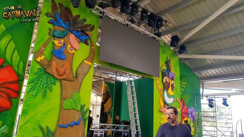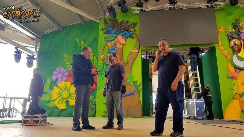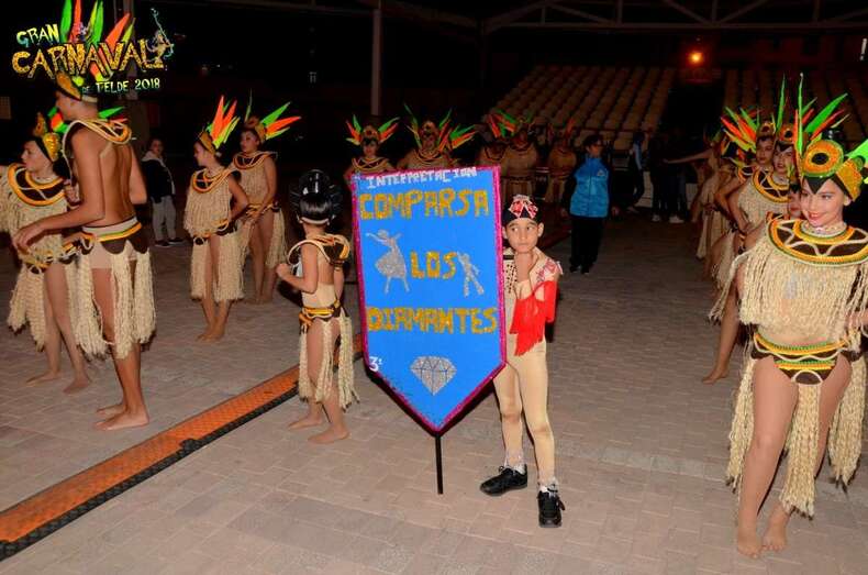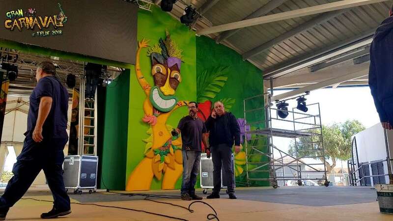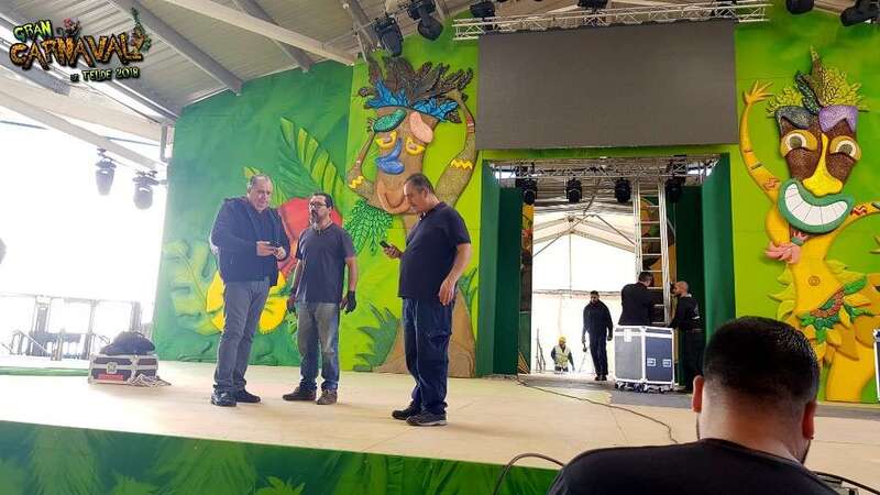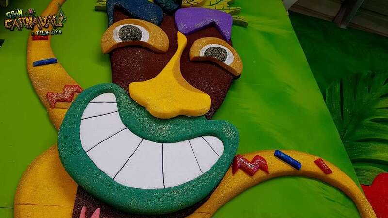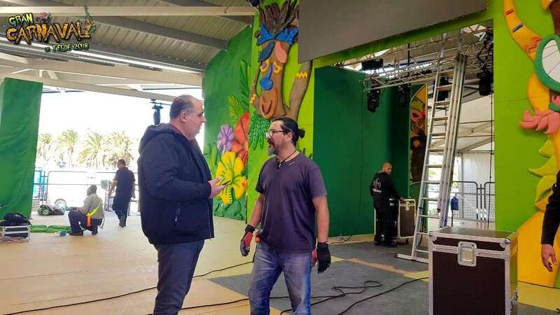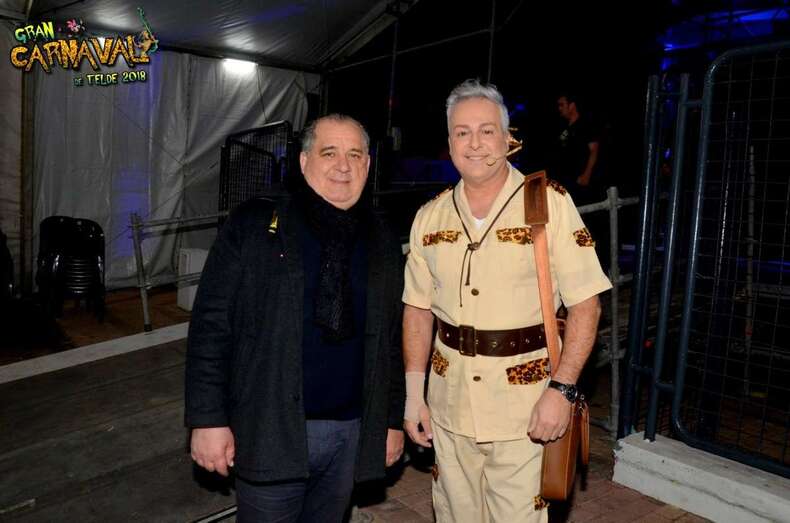 Sobre el escenario, que simula una jungla, estuvo acompañado por una representación de la comparsa infantil Los Diamantes (primer premio de concurso de comparsas infantiles de Las Palmas de GC), las murgas Los Nietos de Sarymánchez (segundo premio de Interpretación, tercero de Vestuario y Premio Criticón del carnaval capitalino) y Las Golisnionas (tercer premio de Vestuario en Ingenio).