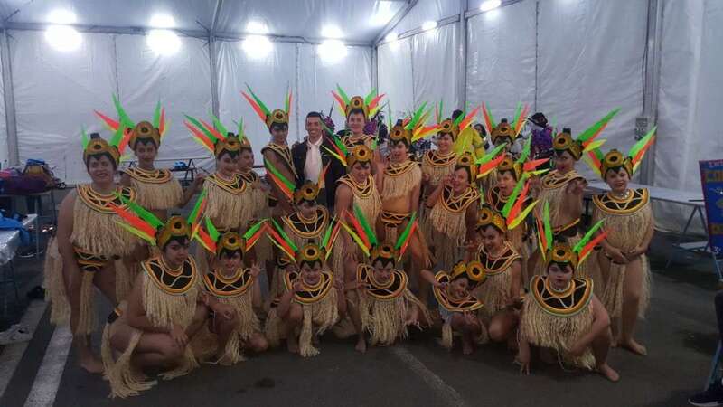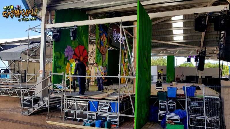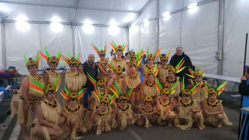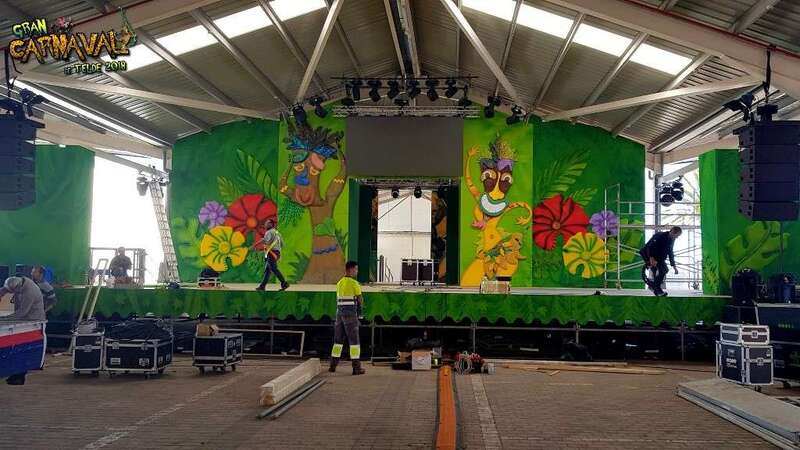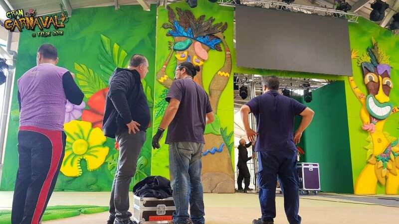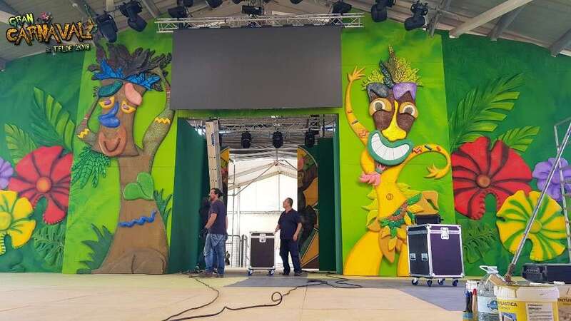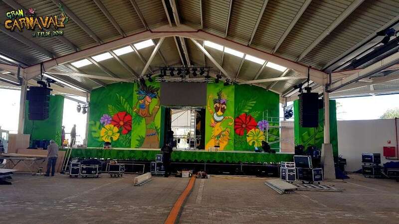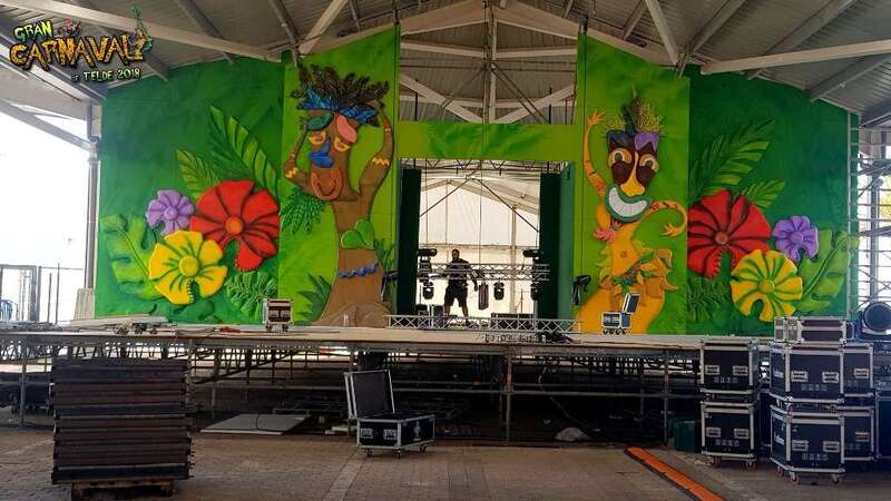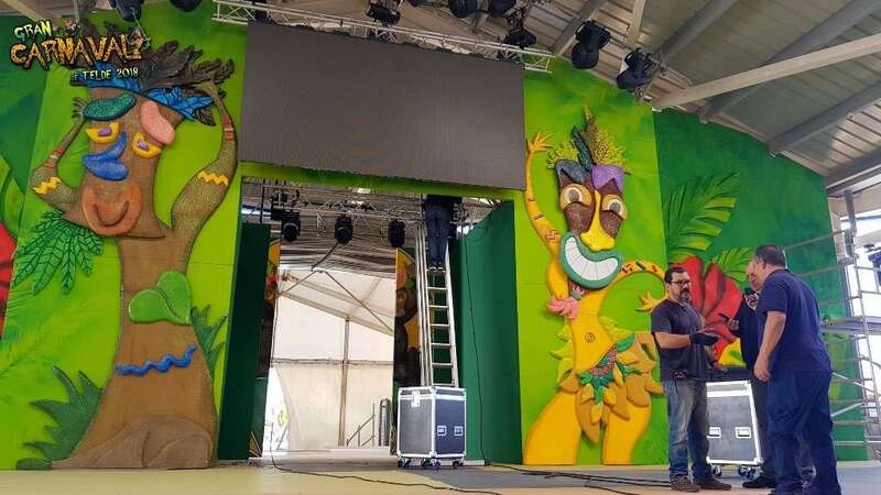Sobre el escenario, que simula una jungla, estuvo acompañado por una representación de la comparsa infantil Los Diamantes (primer premio de concurso de comparsas infantiles de Las Palmas de GC), las murgas Los Nietos de Sarymánchez (segundo premio de Interpretación, tercero de Vestuario y Premio Criticón del carnaval capitalino) y Las Golisnionas (tercer premio de Vestuario en Ingenio).