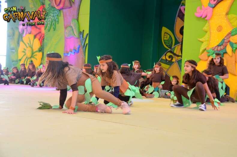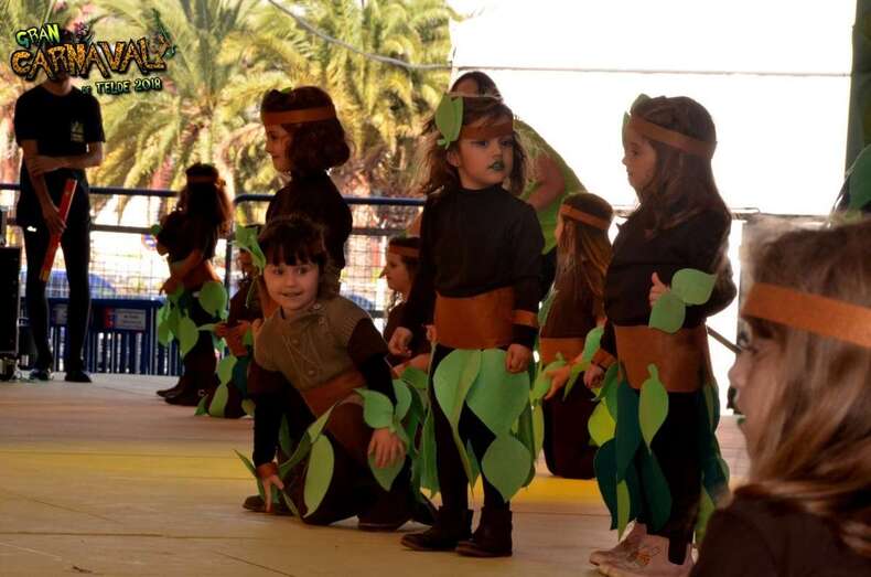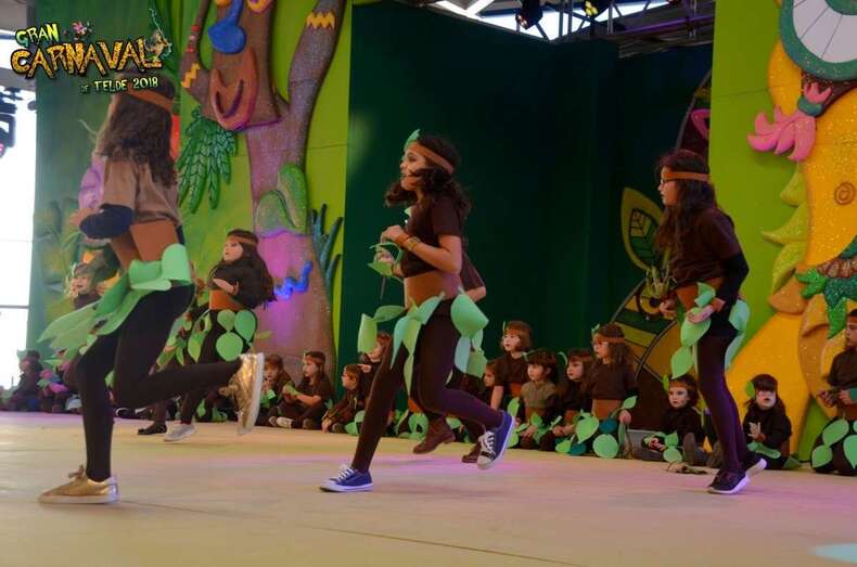 Telde.- El área polivalente de Narea se transformó en la mañana de este sábado  en una pequeño templo indígena con la gran fiesta infantil del Carnaval de La Selva de Telde. Un espectáculo en el que los pequeños dieron rienda suelta a su espíritu fiestero y que concitó un gran interés entre el público familiar, con una asistencia que superó, según las cifras de la Concejalía de Festejos, las 3.000 personas.