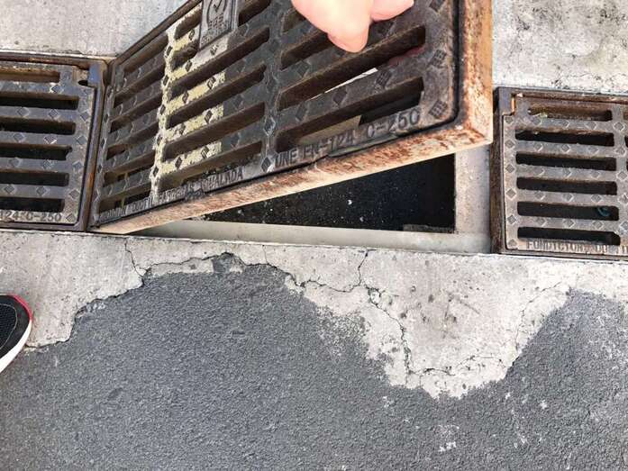 Denuncian que “día y noche” soportan el sonido que desprenden las rejillas metálicas que cubren las tomas de aguas pluviales al pasar las ruedas de los vehículos sobre ellas.