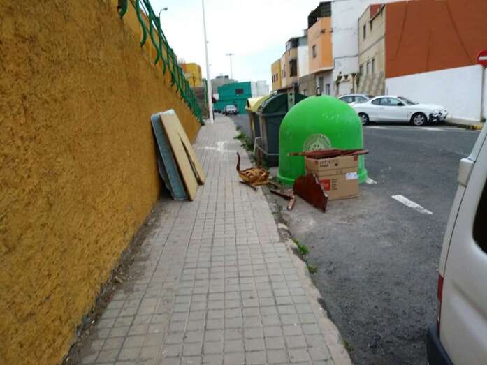 Telde.- “Hace una semana se retiró y se limpio todo. Esta mañana no había nada y por la tarde ya estaba lleno de residuos”. Esta es la queja en voz alta que realiza un vecino de Melenara ante la acumulación de escombros, basura y restos de muebles en los alrededores del campo de fúbol, en la calle de Churriguera.