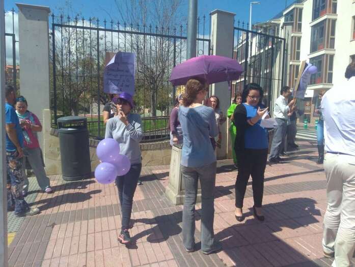 Luciendo la mayoría camisetas moradas, haciendo sonar silbatos y portando pancartas y globos, hombres y mujeres se pasearon por diferentes sectores del sector de La Barranquera, pero al llegar a la calle de José Vélez, en las proximidades del parque urbano, hubo quien les lanzó huevos desde la ventana de una vivienda.