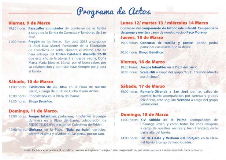 Telde.- San José de Las Longueras, la popular barriada de Telde, ya está en fiestas. Anoche, el joven vecino Abel Díaz Martel, presidente de la Federación de Colectivos de Telde, leyó el pregón anunciador de estos festejos que se prolongarán el próximo domingo 18 de marzo.