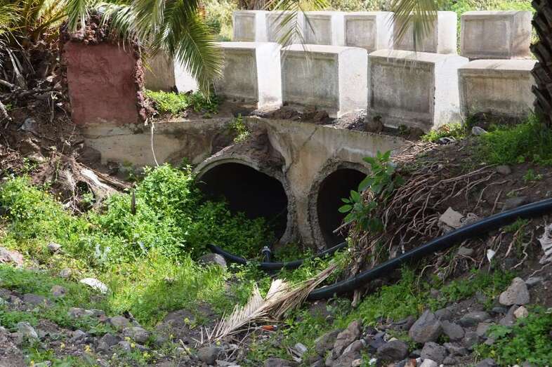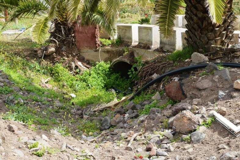 Este no es el único problema que presenta la zona. El cauce del barranquillo que pasa por el lugar acumula piedras y arena que están a punto de atrancar los conductos que permite el trasvase del agua por debajo de la vía de acceso al barrio de Lomo Guinea. Ya ha ocurrido en varias ocasiones, cuando se producen precipitaciones intensas, que el sector queda incomunicado o surgen dificultades para acceder a él porque el agua de la vaguada desborda su cauce por este taponamiento.