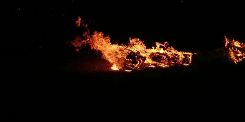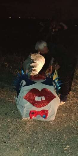 Y el sábado fue el día grande con el Entierro de El Hueso que finalizó con su quema. La comitiva fúnebre compuesta por una carroza efectuó un recorrido por calles de Las Huesas, con el animado acompañamiento de una batucada, hasta el solar próximo a la iglesia donde tendría lugar la incineración en un ambiente de mucha pena vecinal por la triste despedida. Los actos culminaron con una exhibición de fuegos artificiales y una verbena también en la plaza.