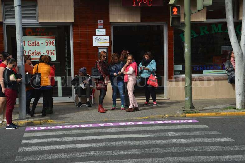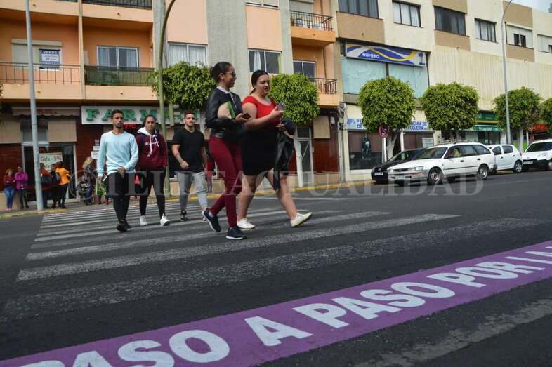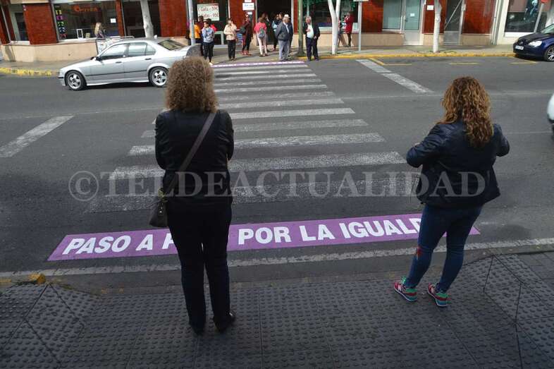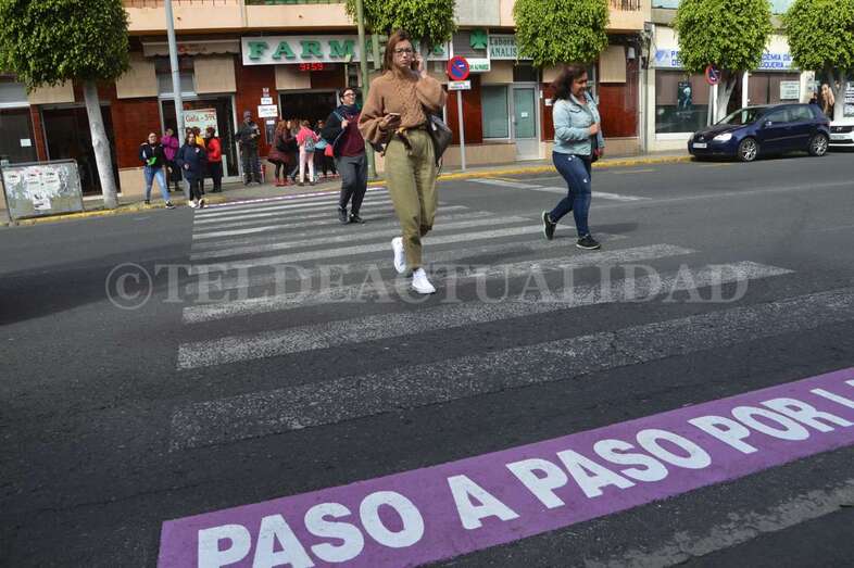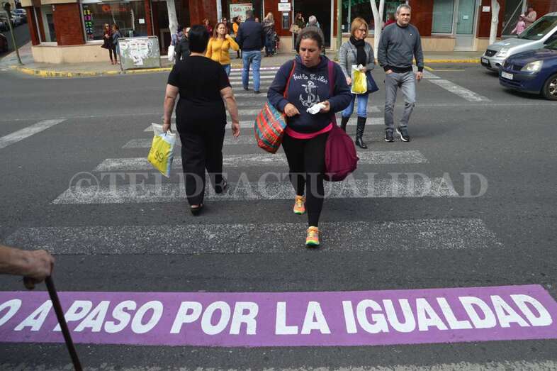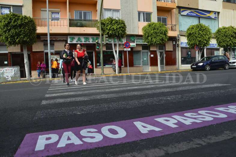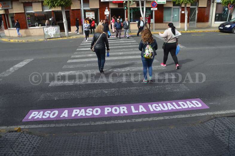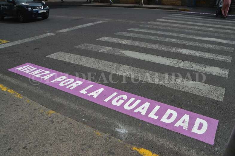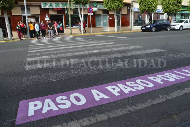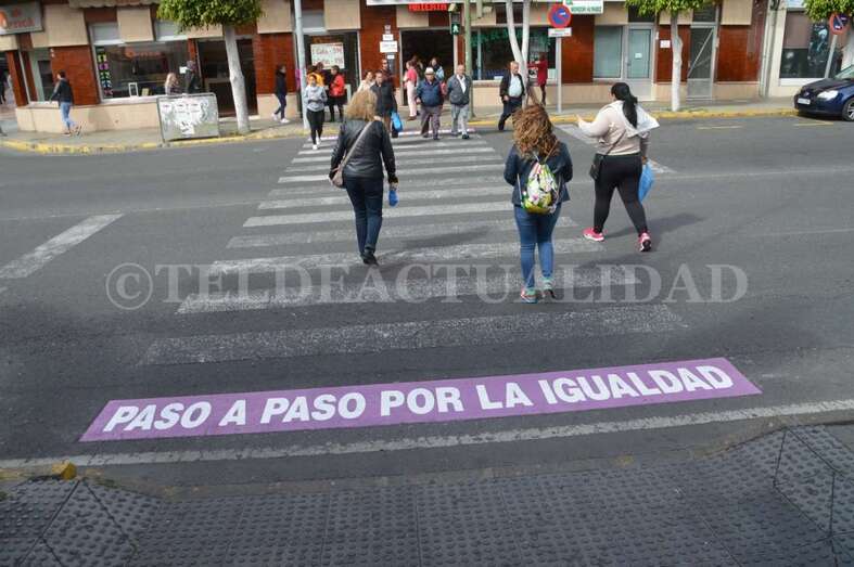 El cebreado, que se encuentra en la calle Poeta Pablo Neruda, junto al Mercado Municipal, luce los lemas Paso a paso por la Igualdad y Avanza en Igualdad pintados en sus dos cabeceras.